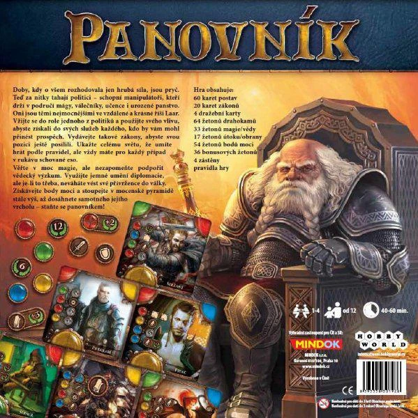 Balení obsahuje: 64 karet postav, 24 karet zákonů, 4 dražební karty, 64 žetonů drahokamů, 33 žetonů magie, 17 žetonů útoku, 54 žetonů bodů moci, 36 bonusových žetonů, 4 zástěny, pravidla hry.