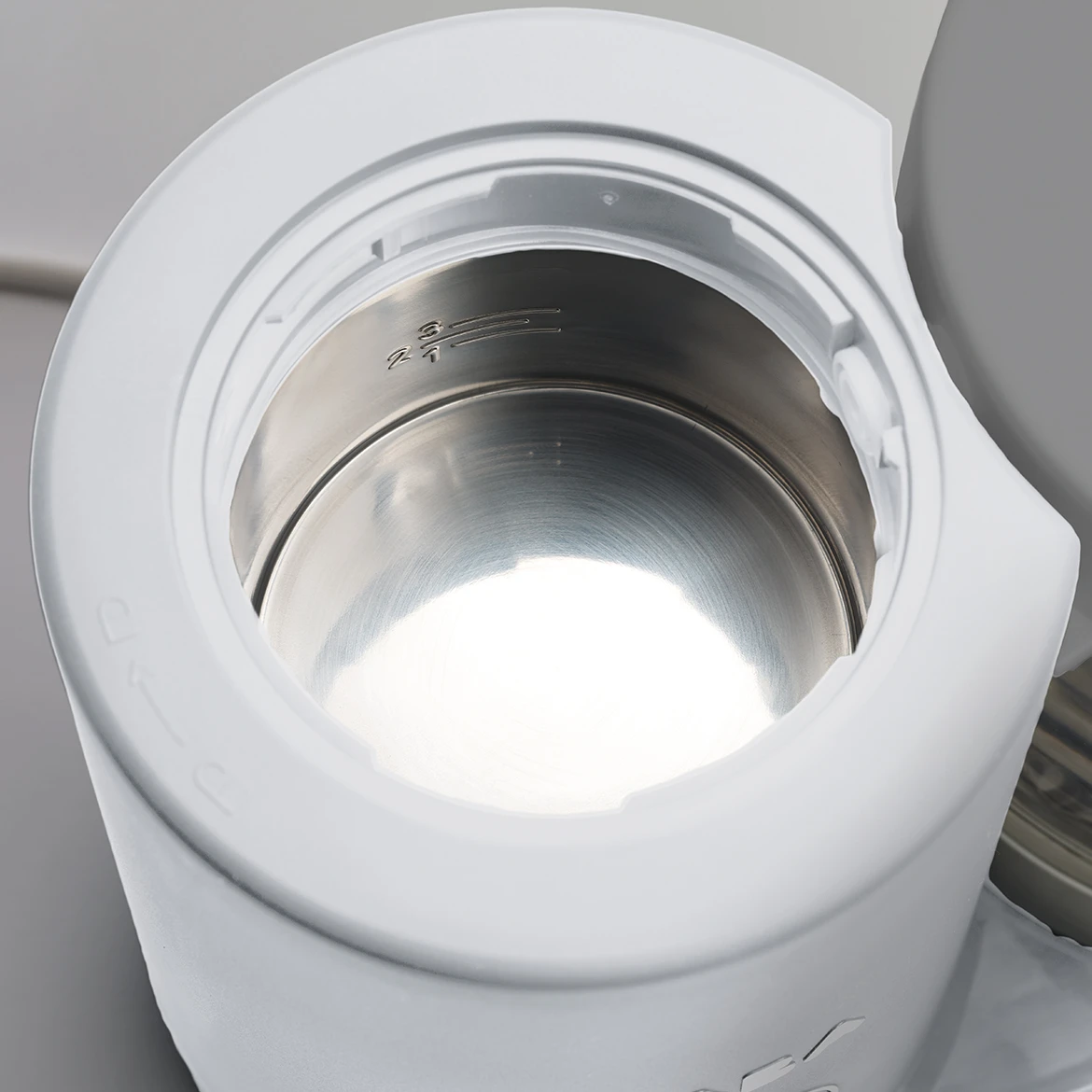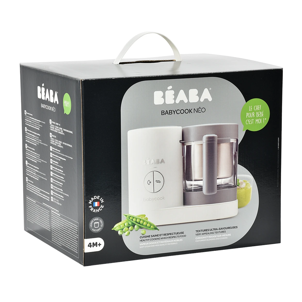 Zcela nový model Babycook® NEO má skleněnou nádobu s objemem 1250 ml a nerezový vkládací košík s objemem 1000 ml. Nerezový zásobník na vodu s vnitřní ryskou a se širokým vstupním otvorem usnadňuje plnění vodou i čištění zásobníku.