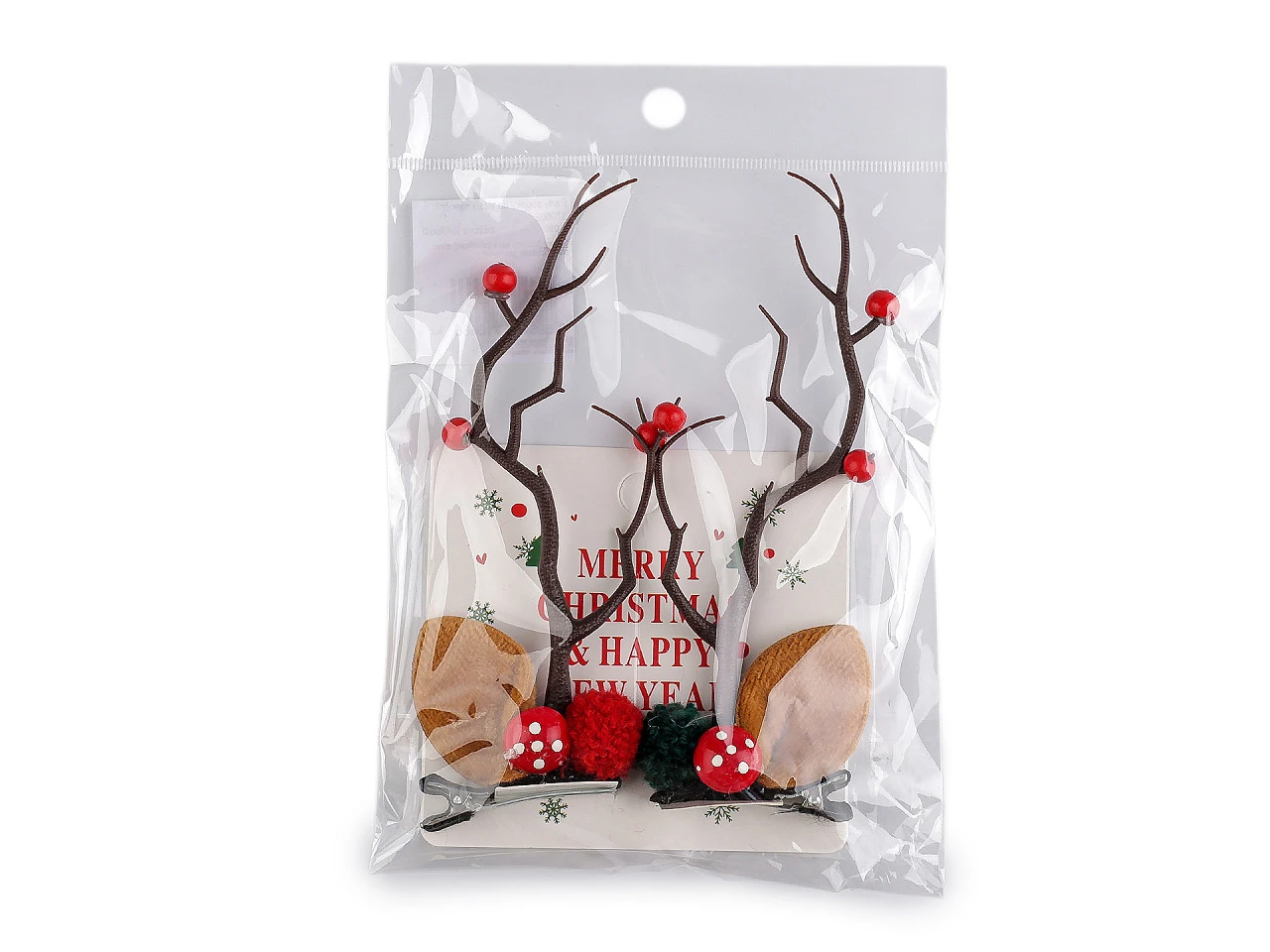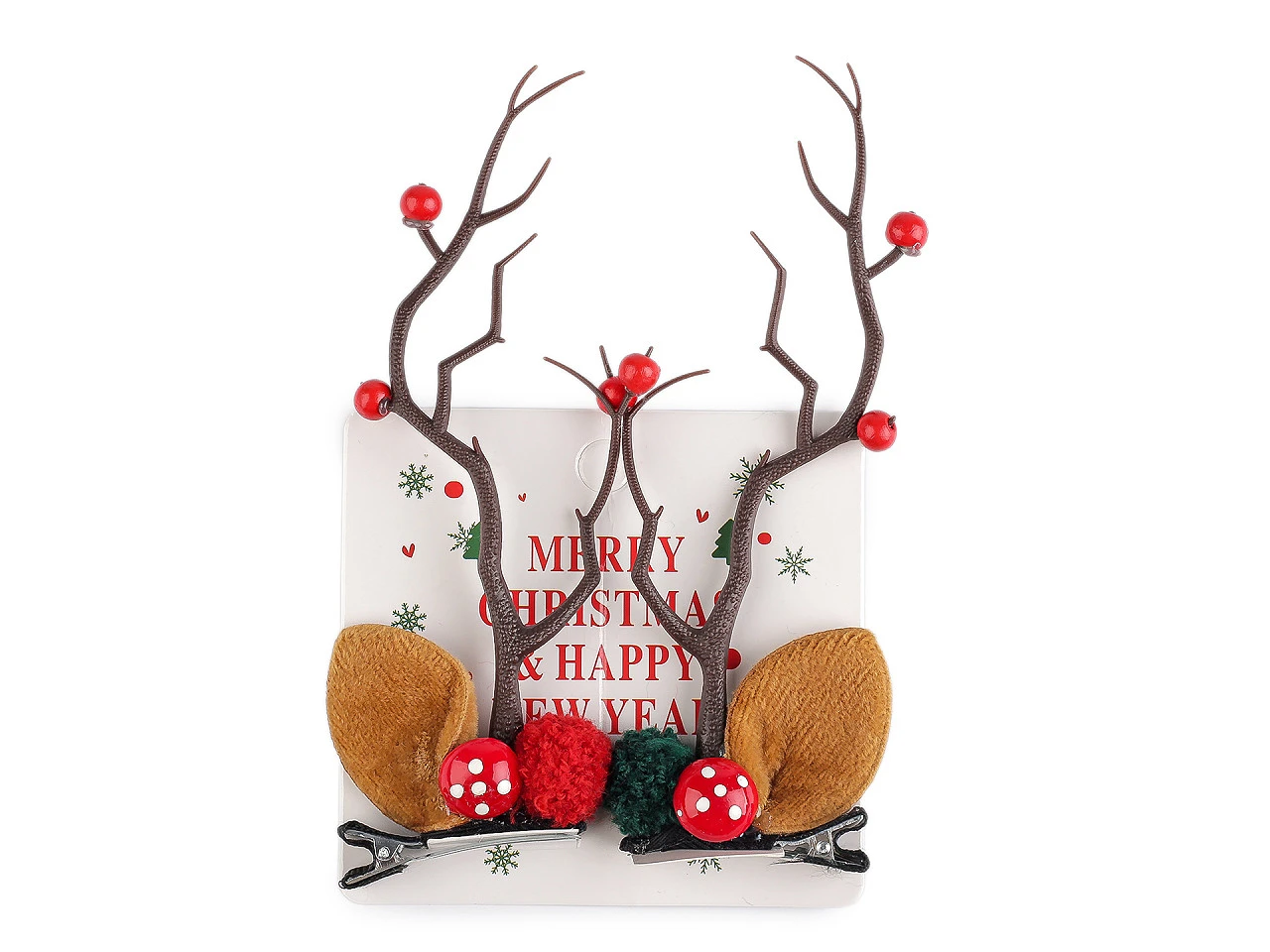 Jsou ozdobené bambulkou, muchomůrkou a šípky v paroží. Parůžky jsou pevné, z poloměkkého plastu. Nemusí se nosit jen ve vlasech, můžete si je ozdobně připnout jako zimní dekoraci.