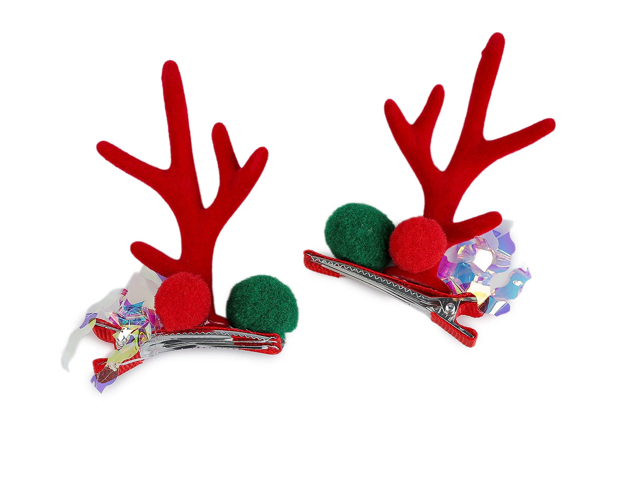 Jsou ozdobené lesklými lamelami, parůžky jsou pevné, potažené imitací semiše. Spony mají zoubky, v účesu perfektně drží. Nemusí se nosit jen ve vlasech, můžete si je ozdobně připnout na tašku, jako zimní dekoraci apod.