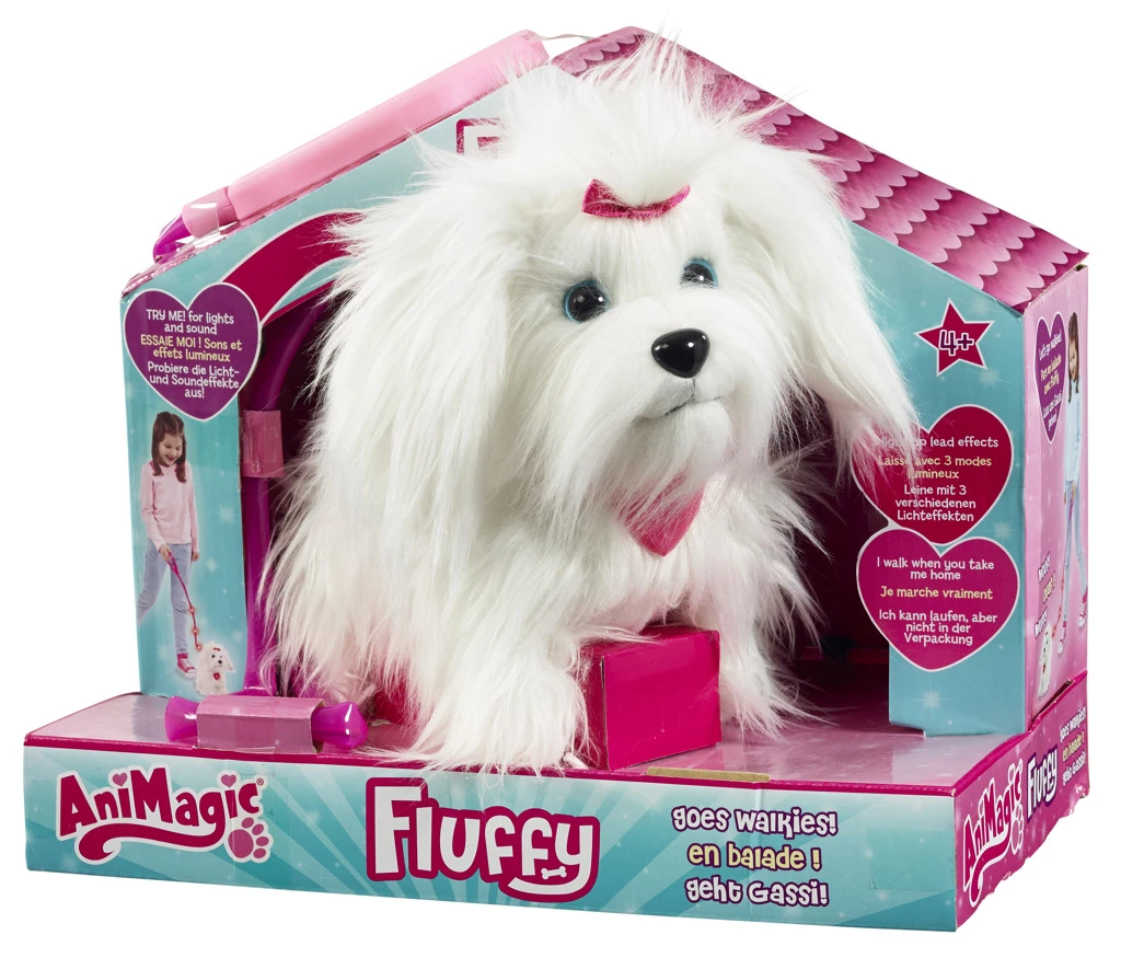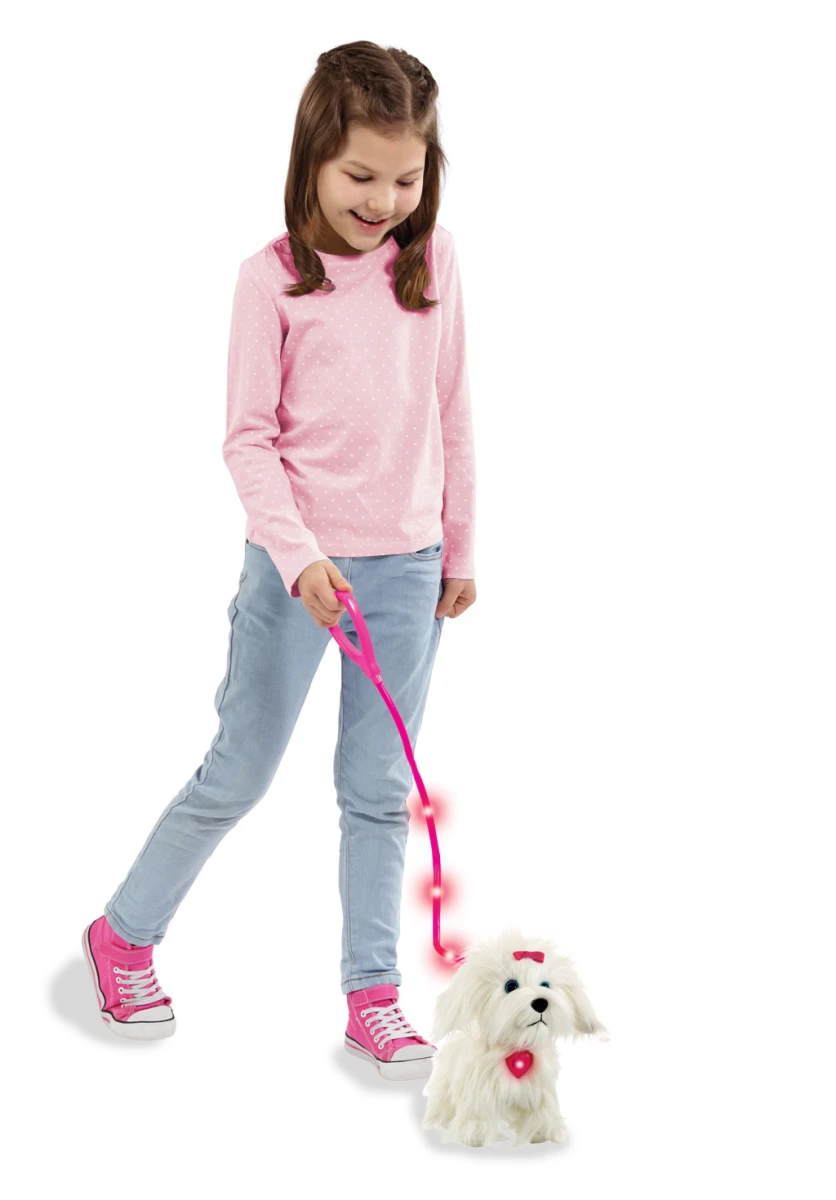 Fluffy je roztomilý pejsek, který umí chodit a štěkat. Pejsek má svítící vodítko se 3 světelnými efekty. Skvělý společník nejen na procházky. Pejsek je nezbytný módní doplněk! S veselým pejskem, který má svítící vodítko budeš hvězdou.