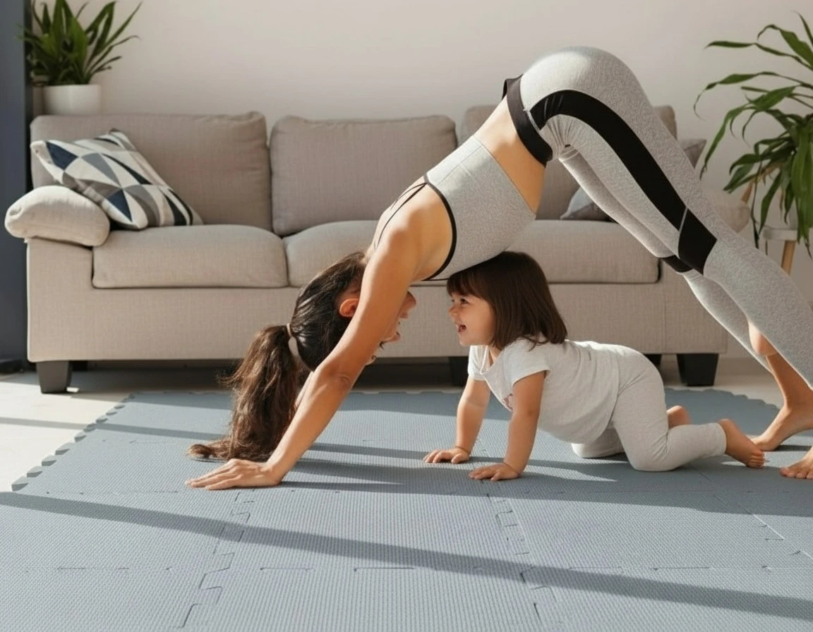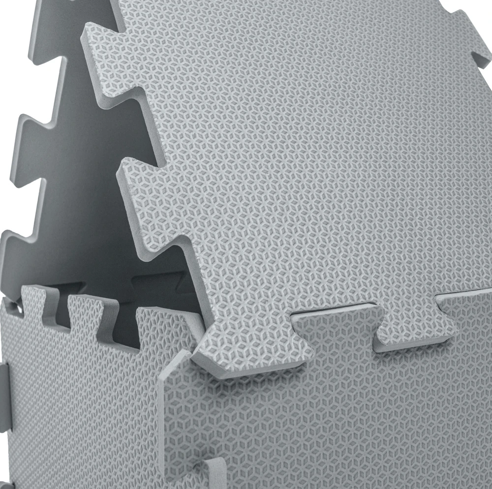 Tloušťka jednotlivých dlaždic je 1 cm, což zajišťuje dostatečnou oporu a izolaci. Zároveň, když podložku nepoužíváte a je složená, nezabírá zbytečně moc místa.