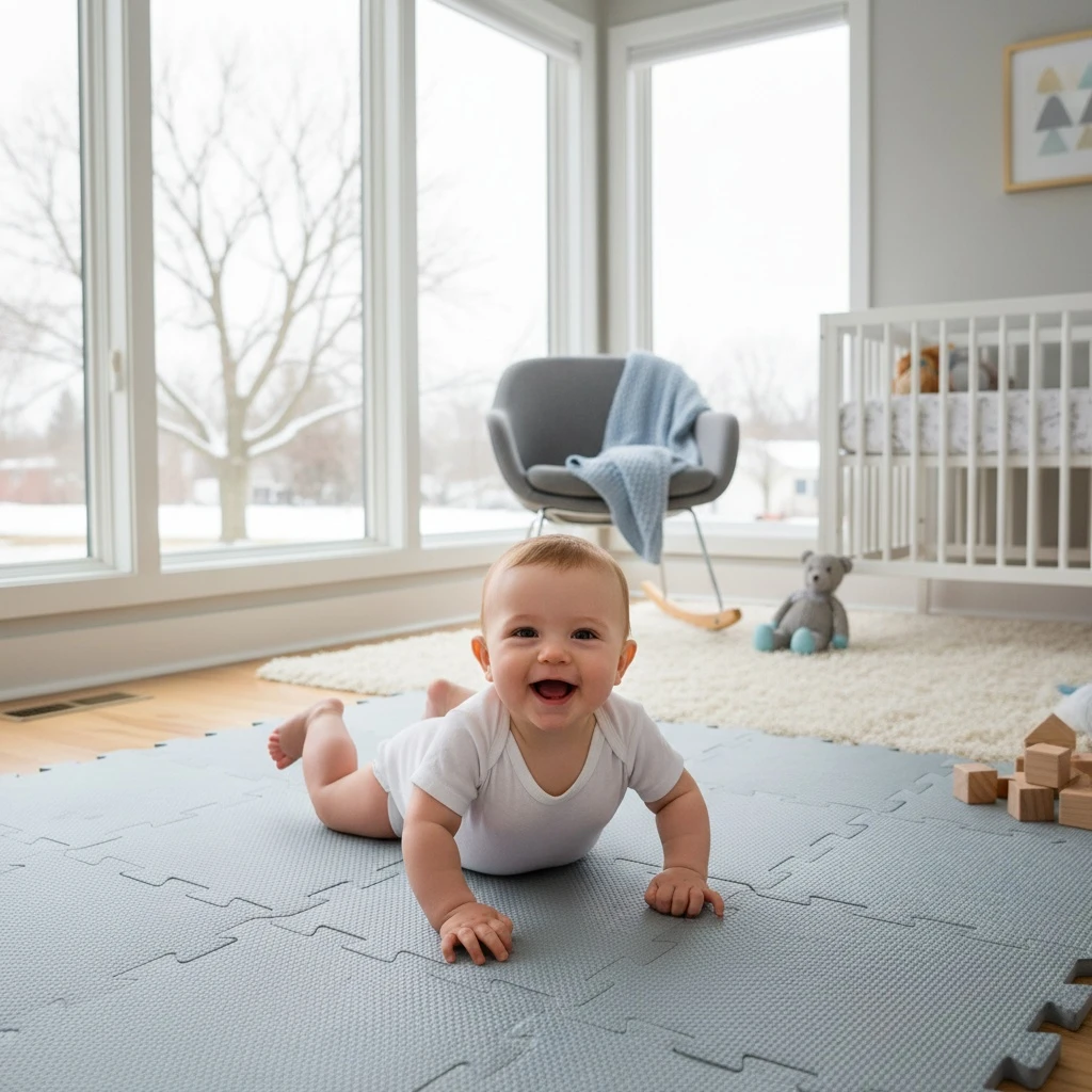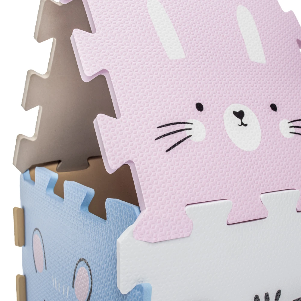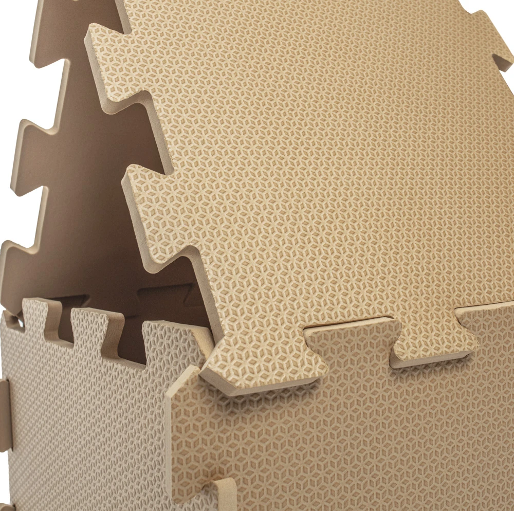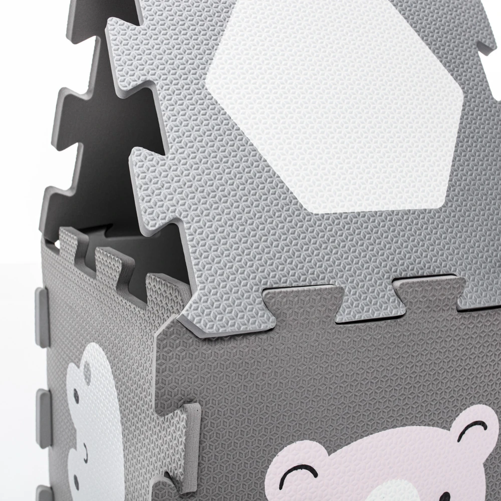 Jednotlivé dlaždice 30 × 30 cm (9 ks) na sebe perfektně navazují. Podložka je vhodná pro děti od narození, vyrobená z nezávadného a příjemného materiálu.