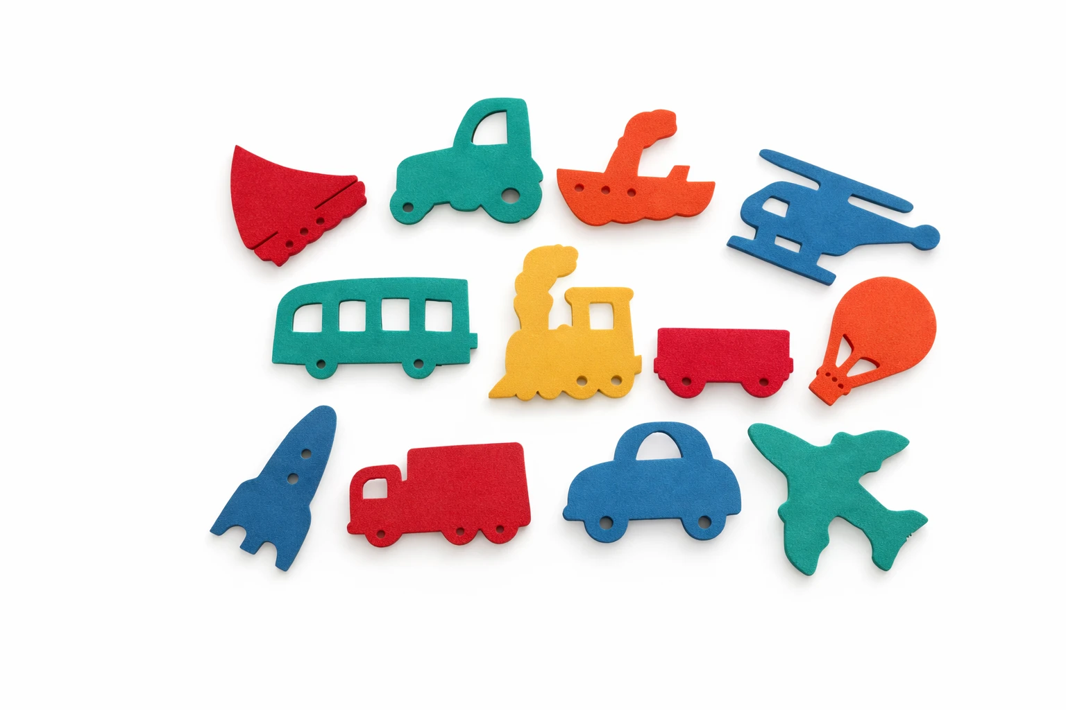 Jsou vyrobeny ze zbytkového materiálu - v mixu motivů - zvířátek, abecedy, dopravních prostředků....