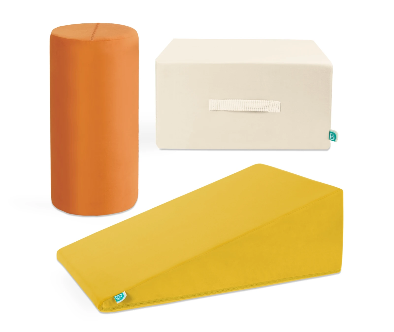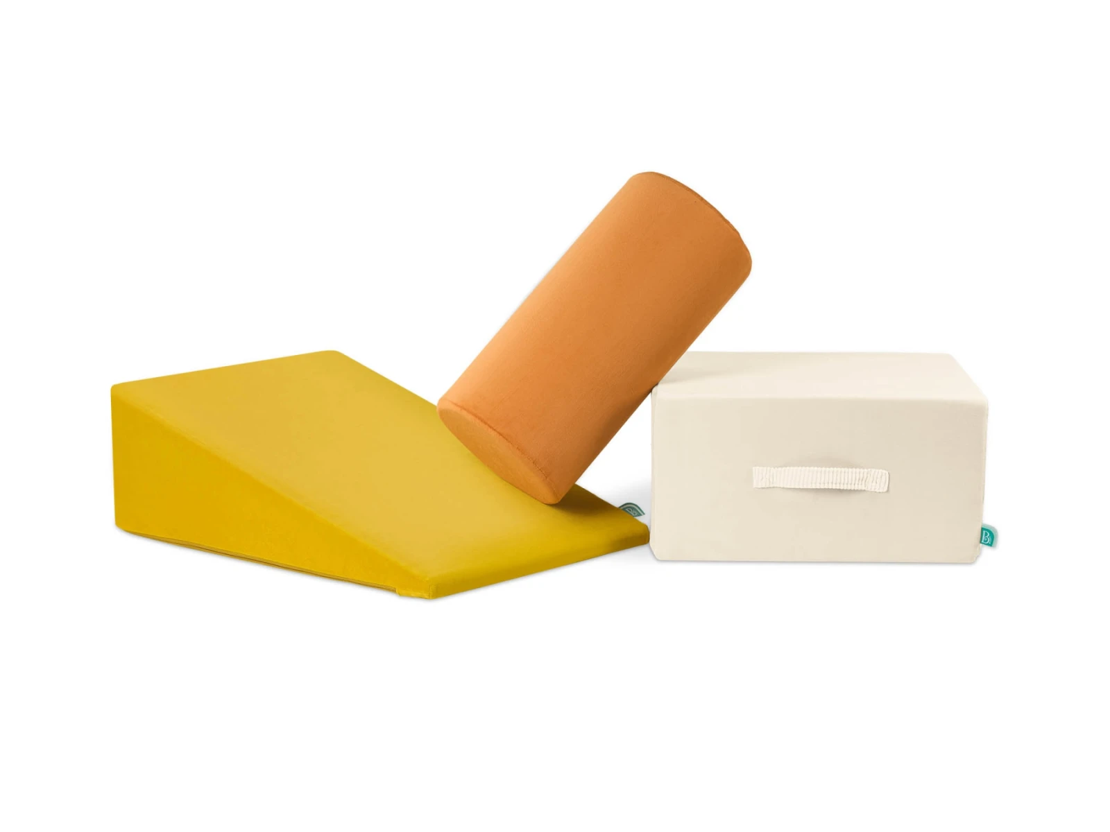 Rozměry: kostka 41 x 41 x 21 cm, rampa 61 x 41 x 21 cm, válec 41 x 21 x 21 cm.