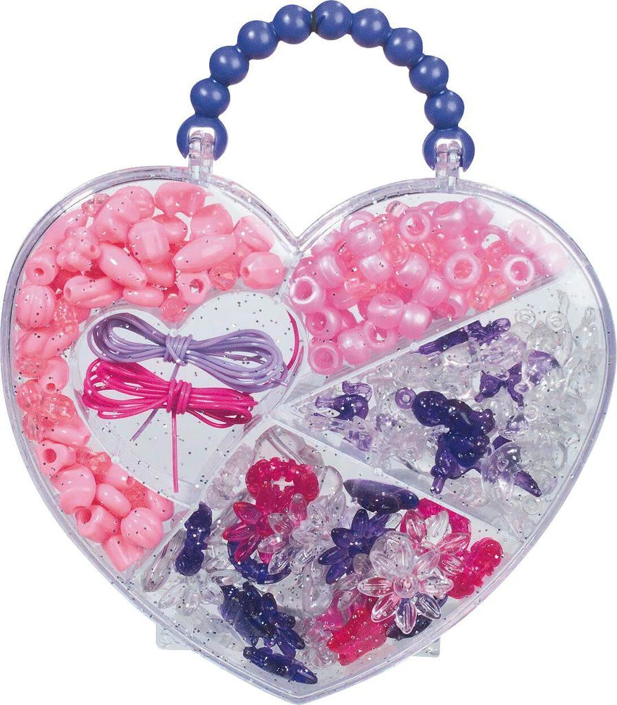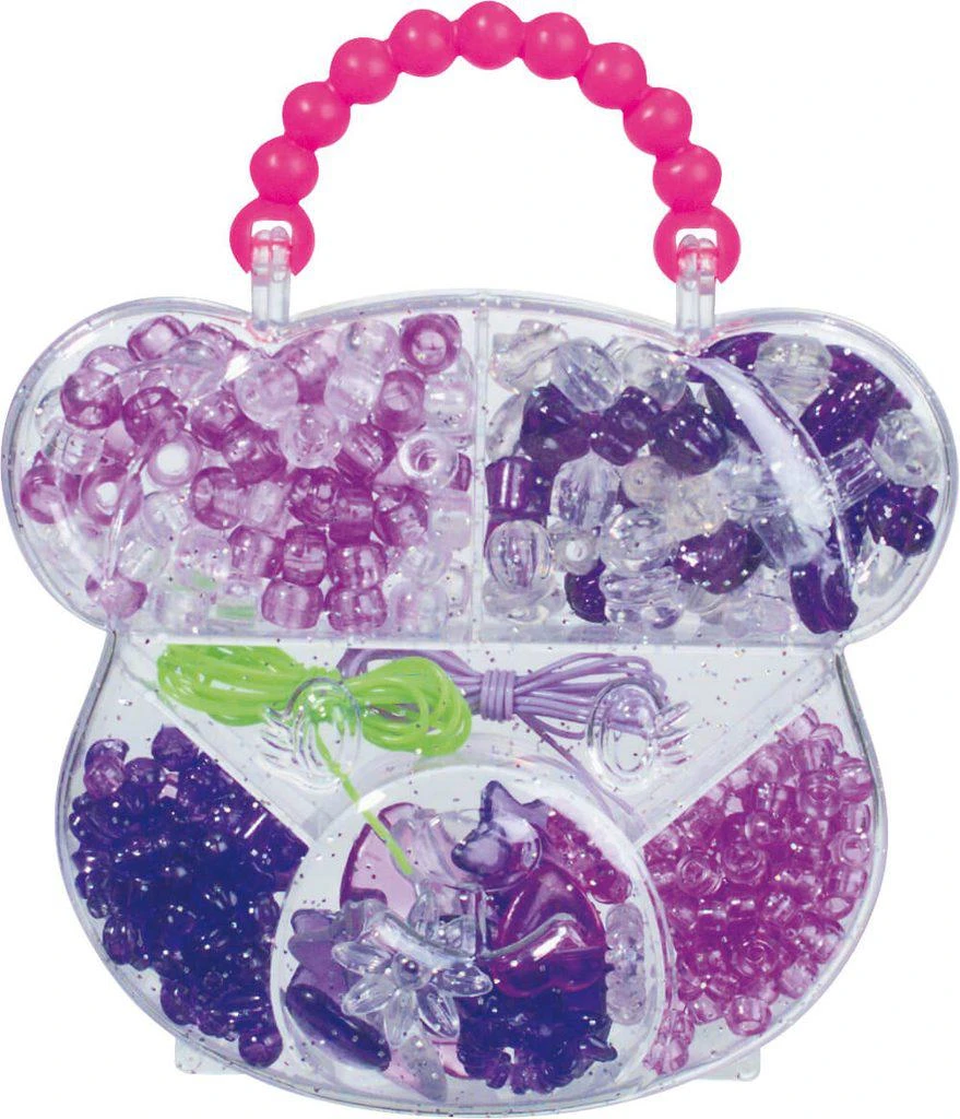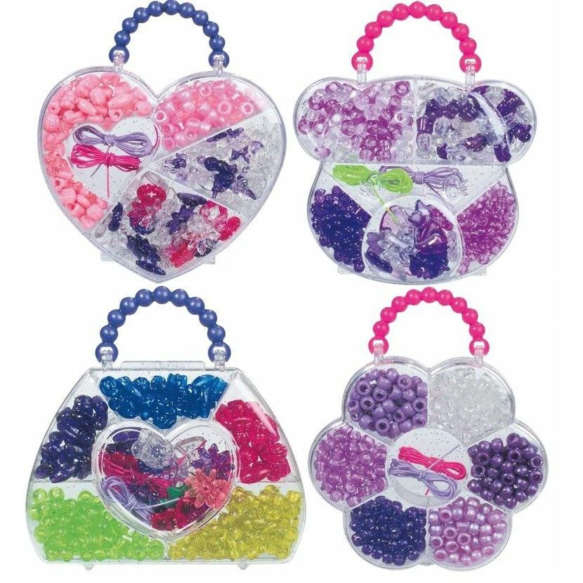 Balení obsahuje různé množství plastových korálků různých velikostí, barev a tvarů.
