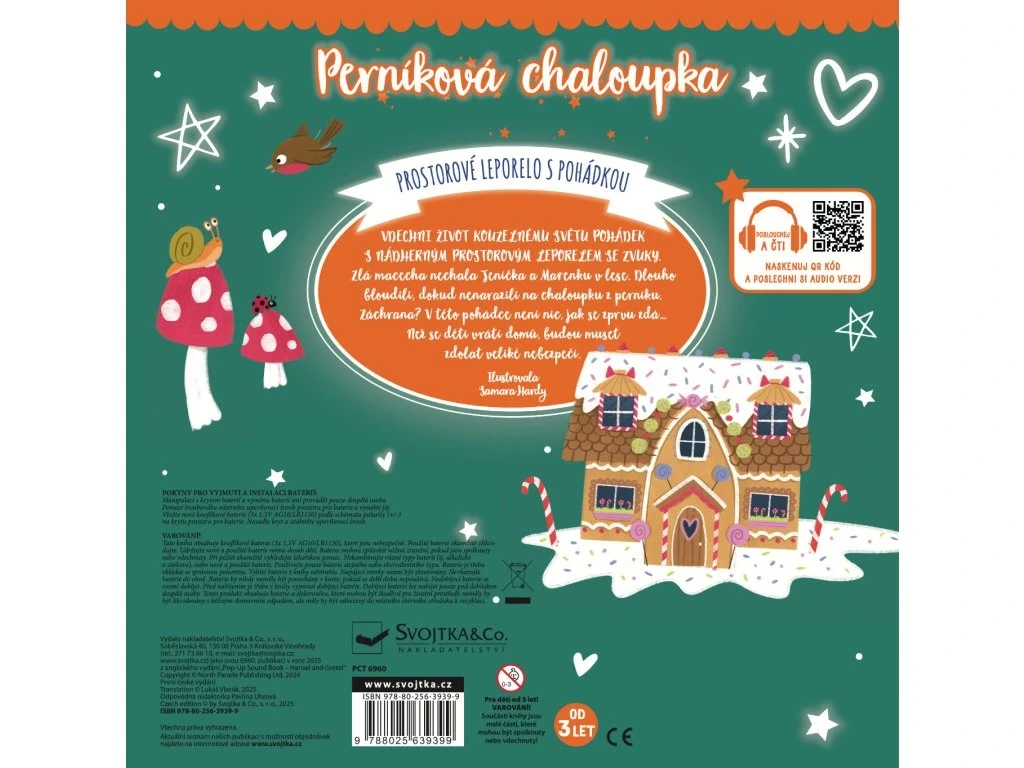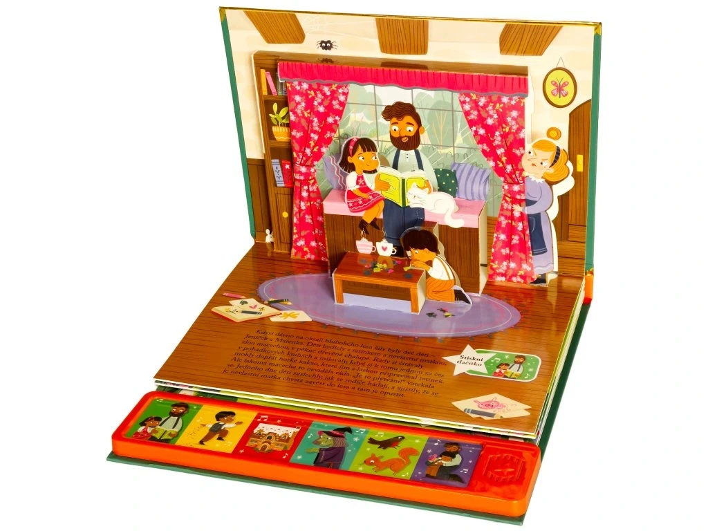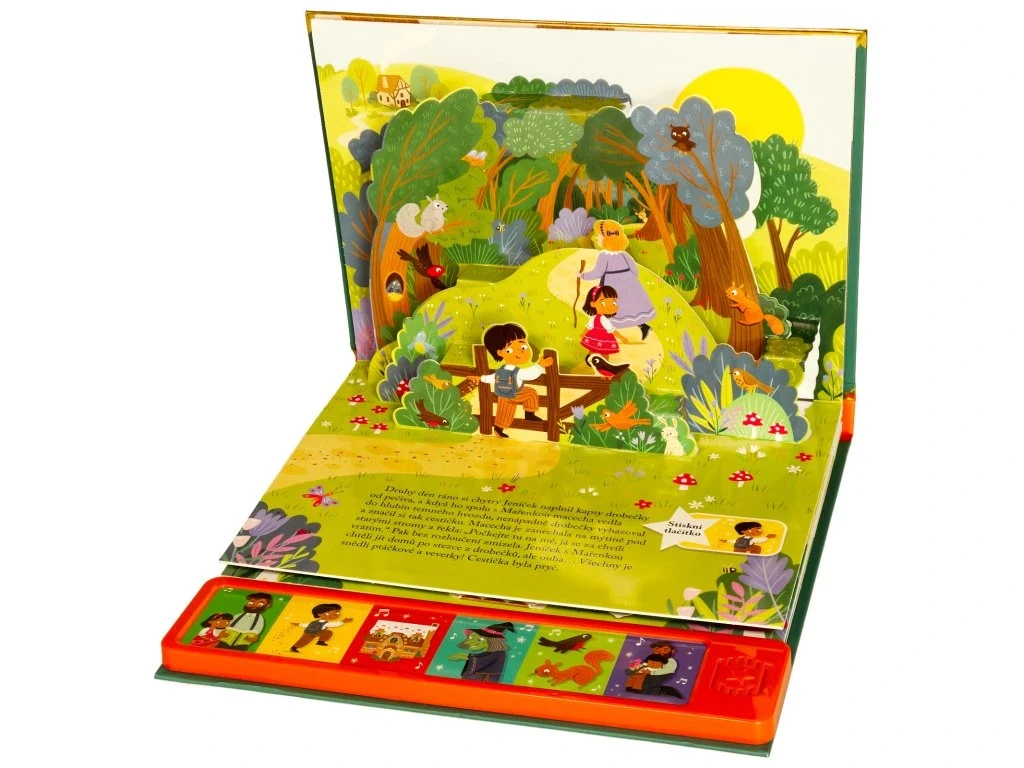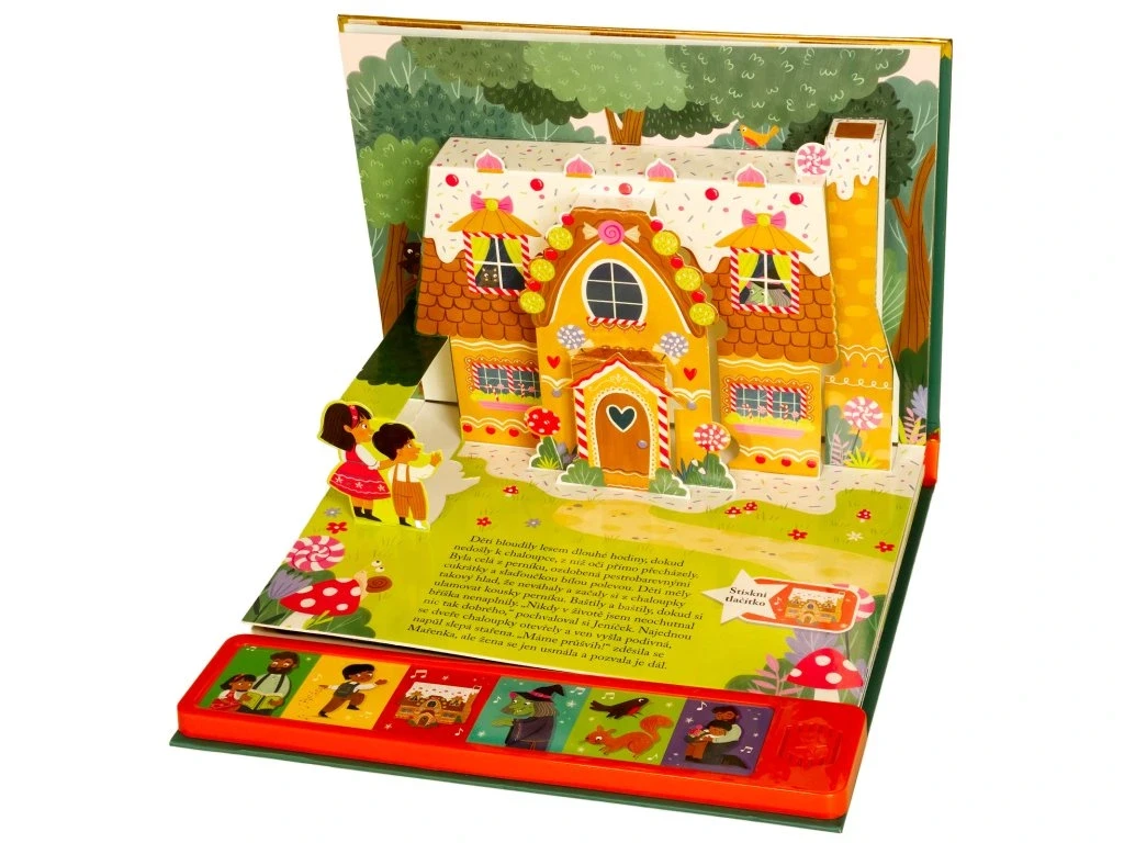 Vdechni život kouzelnému světu pohádek s nádherným prostorovým leporelem se zvuky. Když macecha nechá Jeníčka a Mařenku v hlubokém lese, děti bloudí, až narazí na lákavou chaloupku z perníku. Ale je to opravdu záchrana? V tomto prostorovém leporelu se zvuky ožívá klasická pohádka o odvaze, důvtipu a sourozenecké lásce. Vyprávějte si s dětmi, mačkejte zvuková tlačítka a objevujte stránku za stránkou svět Jeníčka a Mařenky, který se vám doslova vynoří před očima. Díky 3D kulisám a propracovaným ilustracím bude čtení nezapomenutelným zážitkem.