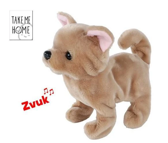 Pes plyšový 21 cm hnědý na baterie štěkající a vrtící ocasem Take Me Home