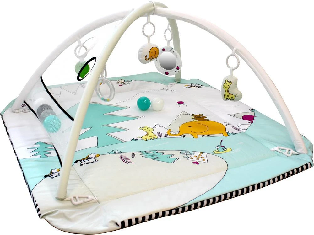 Deka má vyvýšené mantinely pro bezpečnost, velkou hrací plochu a spoustu hraček, které jsou součástí balení. Děťátko ležící na bříšku může objevovat hračky zavěšené na hrazdičce pomocí C-kroužků. Sedící děťátko zabaví kuličky, které lze vhazovat do otvoru k tomu určeného. Deku lze využít pro velmi mnoho způsobů, což jistě ocení nejen děťátko, ale i jeho rodiče.