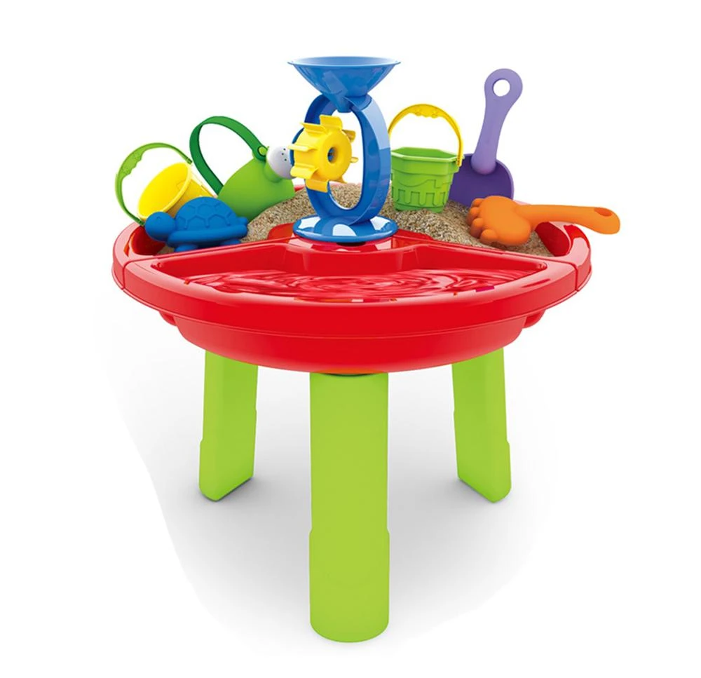 Díky třem různým přihrádkám je tento stolek velmi multifunkční. Můžete jej naplnit nejen pískem a vodou, ale i kamínky, případně rýží či luštěninami. Fantazii se přece meze nekladou. 8 různých přibalených hraček zaručí parádní zábavu. Stolek je vhodný do interiéru i do exteriéru.
