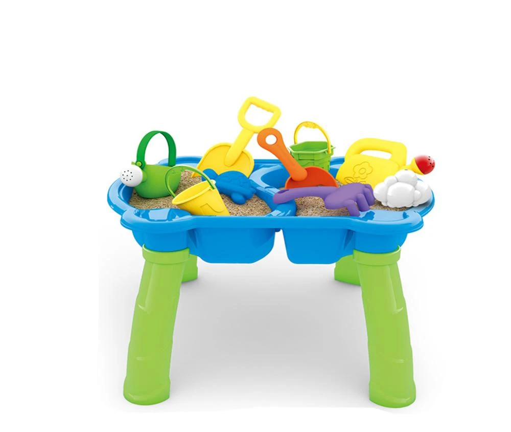 Dvě velké přihrádky a 9 hraček garantují skvělou zábavu. Stačí si zavolat sourozence či kamaráda a stolek snadno přeměníte na pískoviště či bazén. Nekonají se ani bitvy o formičky, v balení jich je dost pro všechny. Stolek je vhodný do interiéru i do exteriéru.