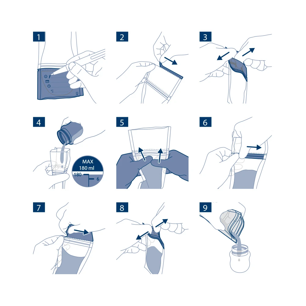 Široký a robustní otvor sáčku zajišťuje snadné plnění a nalévání mateřského mléka