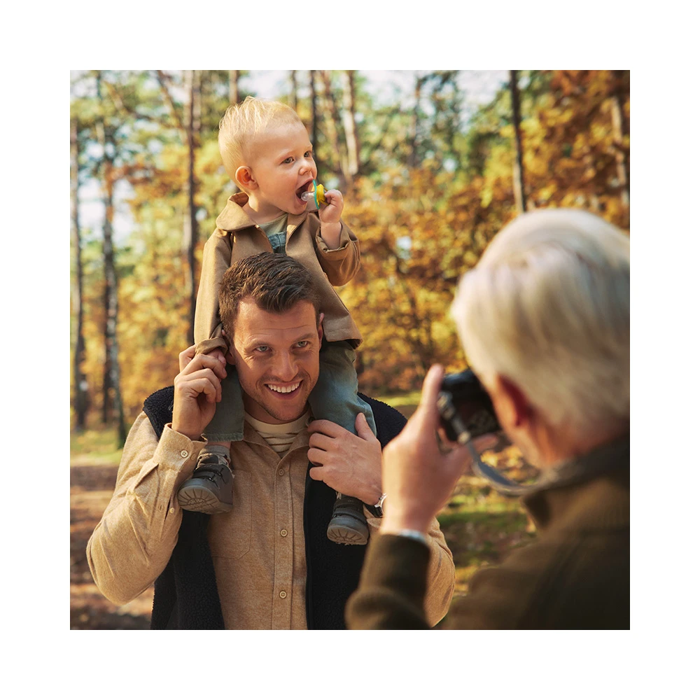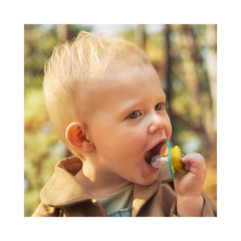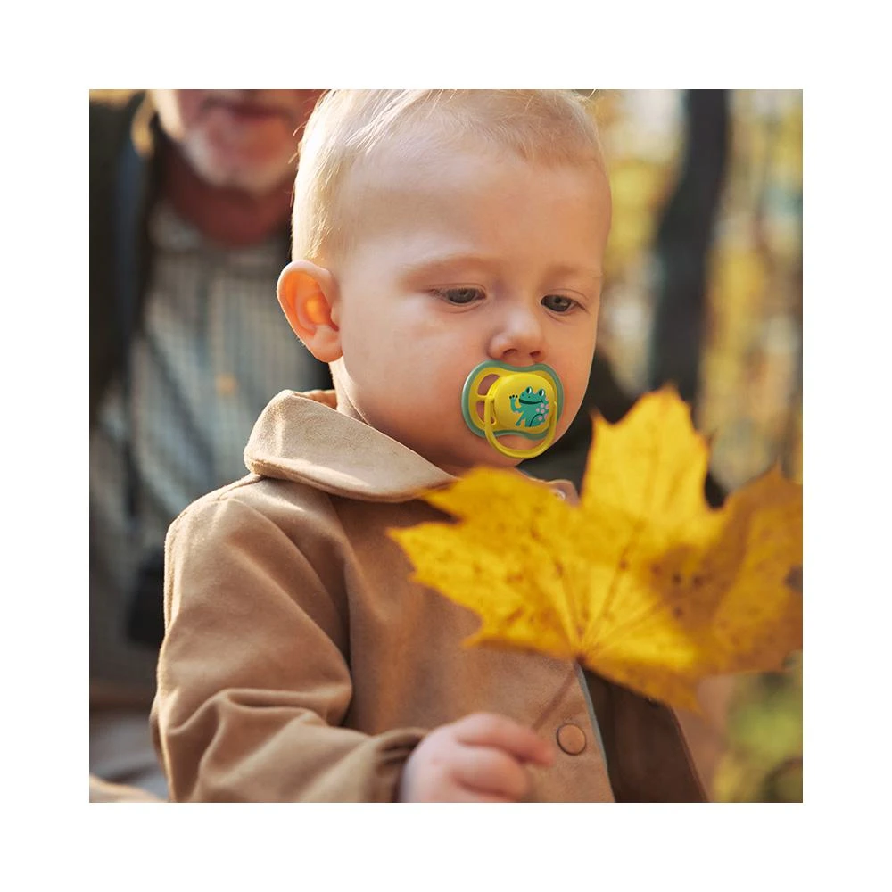 Zklidňující úleva je vždy po ruce, ať se o miminko právě stará kdokoli. Nyní z 80 % z rostlinných materiálů.* Vytvořeno pro pohodlí • Velmi velké ventilačními otvory umožňují pokožce dítěte dýchat • Ortodontický dudlík pro přirozený vývoj zubů a dásní •