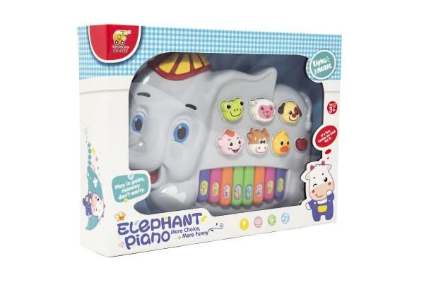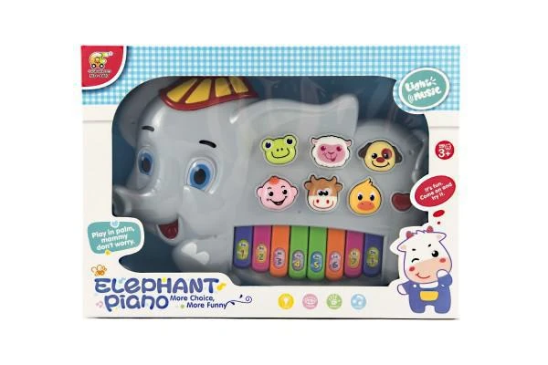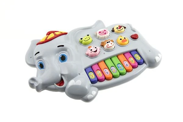 Piánko slon se zvířátky plast 28cm na baterie se zvukem se světlem
