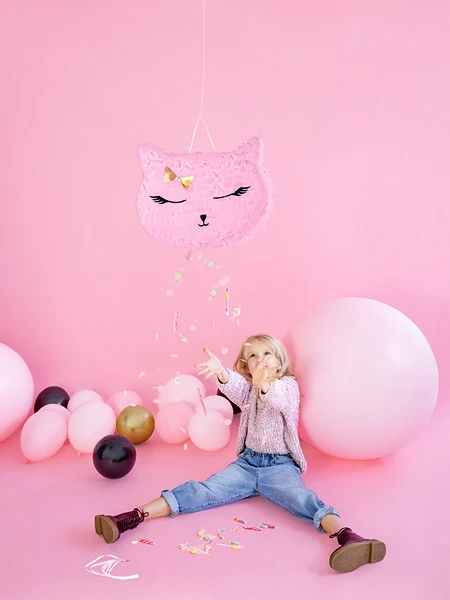 Piňata Kočka ve tvaru růžové kočičí hlavy je skvělým doplňkem pro dětské narozeniny, tematické oslavy nebo zahradní párty. Tato oblíbená párty hra přináší dětem spoustu radosti, napětí i zábavy a často se stává jedním z nejzábavnějších momentů celé oslavy.