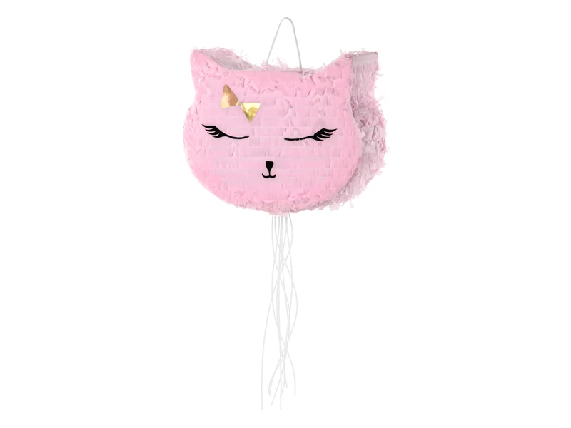 Piňata je vyrobena z papíru a má rozměry přibližně 28 × 34 × 9 cm. Díky svému roztomilému designu kočičí hlavy v růžové barvě je ideální především na dětské oslavy pro holčičky, narozeninové party nebo tematické oslavy se zvířátky.