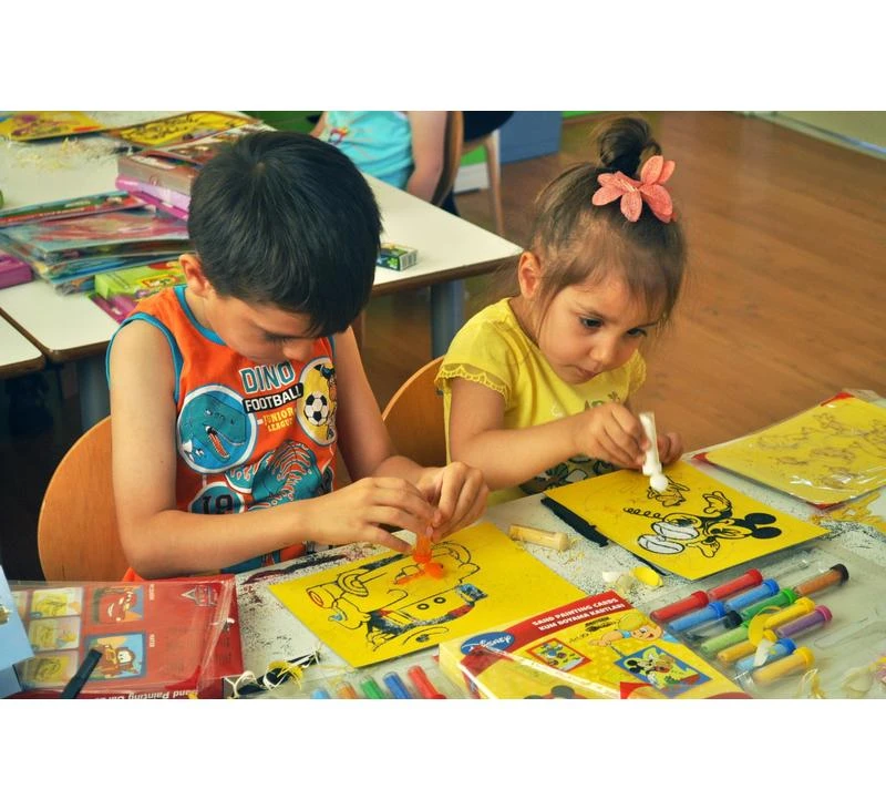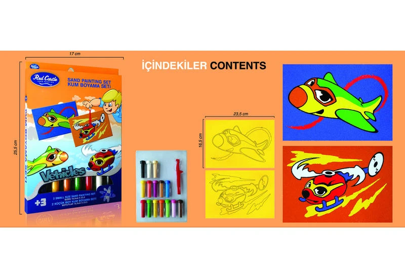 Balení obsahuje: 2 obrázeky k vypískování,speciální pinzetu.15 tub s barevným pískem a 2 obalyna vytvořené obrázky.