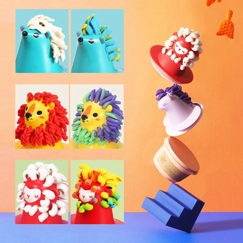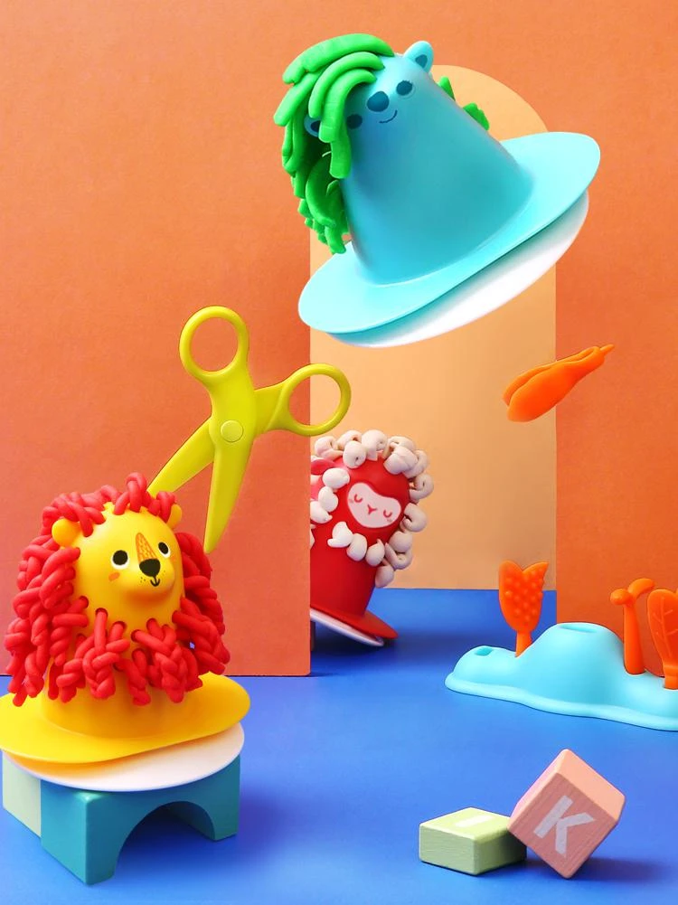 Čím je tato sada zajímavá? Obsahuje 4 barvy modelovacího těsta a postavičky - např. ovca, lev, poník, ježek. Součástí je kompletní výbava nástrojů – hřeben, nůžky, kulma, různé formičky.