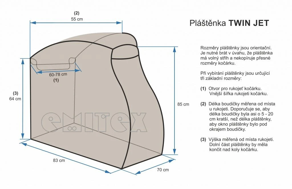 Emitex je česká značka specializující se na výrobu doplňků pro kojence a malé děti. V jejich sortimentu naleznete fusaky, nánožníky, zavinovačky, deky, pláštěnky a další příslušenství ke kočárkům a autosedačkám. Produkty Emitex jsou navrženy s důrazem na funkčnost, kvalitu materiálů a praktičnost pro rodiče i děti. Značku Emitex vyrábí česká firma Baby Textil s.r.o. Kladou důraz na každý detail.
