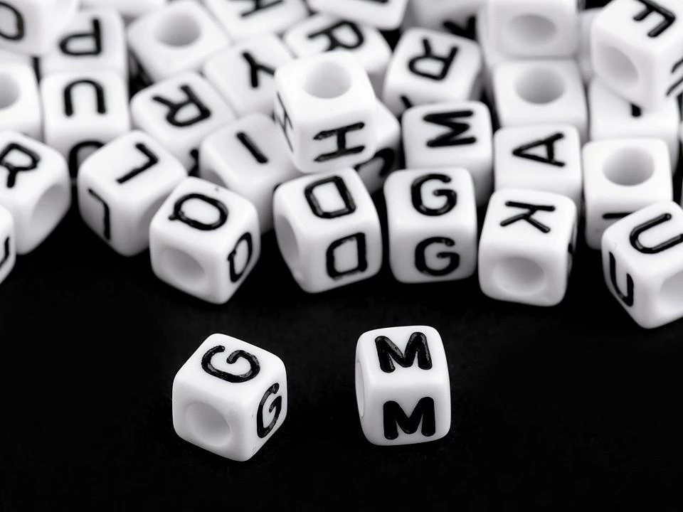Plastové korálky s písmeny kostka 6 mm, 50 ks