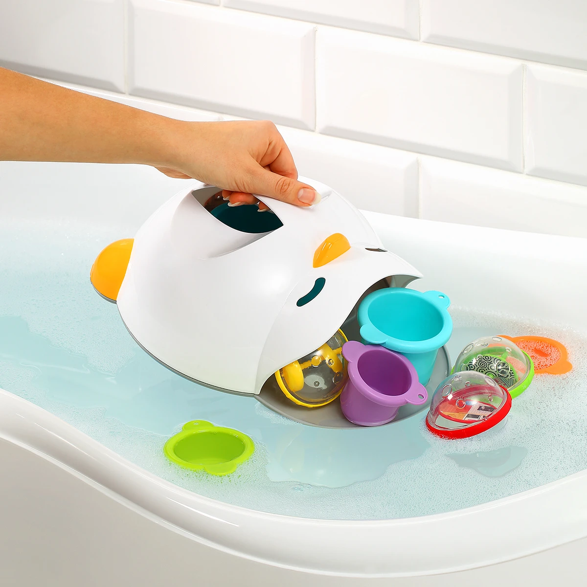 Plastový box na hračky do vany Baby Ono - bílý tučňák