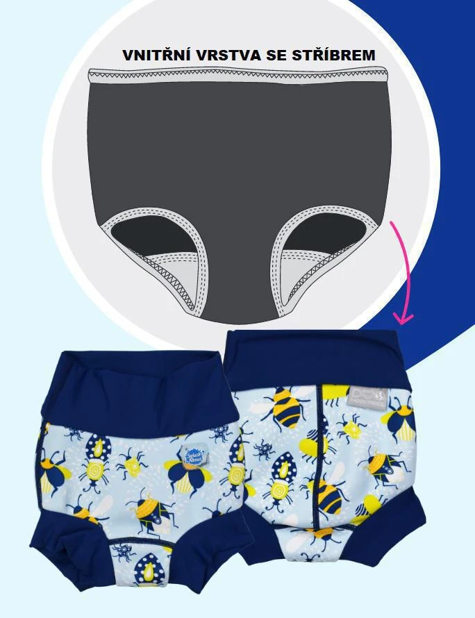 Díky vnitřní všité vložce vyrobené z příměsí stříbra, poskytují plavky dokonalou ochranu proti bakteriím, plísním, patogenům, virům a parazitům Cryptosporidium i COVID-19. Stříbro zvyšuje antibakteriální účinek chloru ve vodě. Vnitřní vložka je zároveň extrémně šetrná k pokožce kojenců.