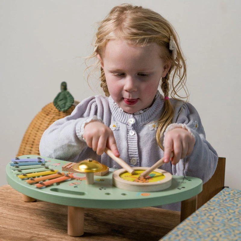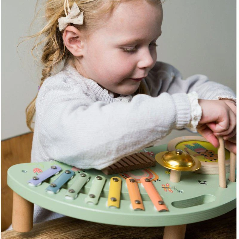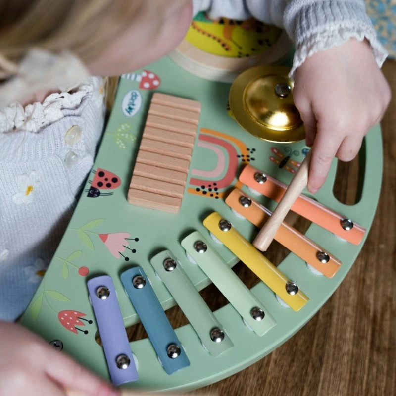 - dřevěná hudební stanice se základnou obsahující hudební nástroje (xylofon, zvonek, bubínek)