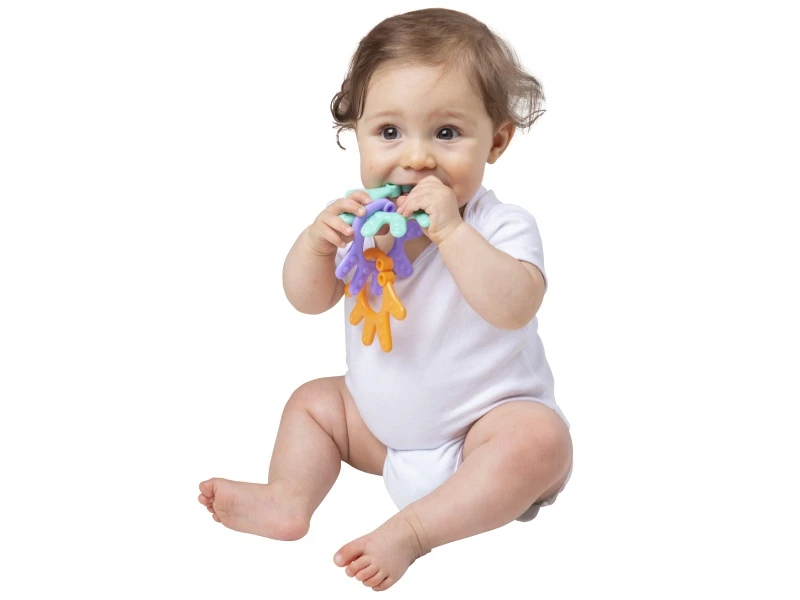 - Praktické použití na cestách – kousátka lze snadno připevnit na kočárek nebo autosedačku pro zábavu kdekoli.