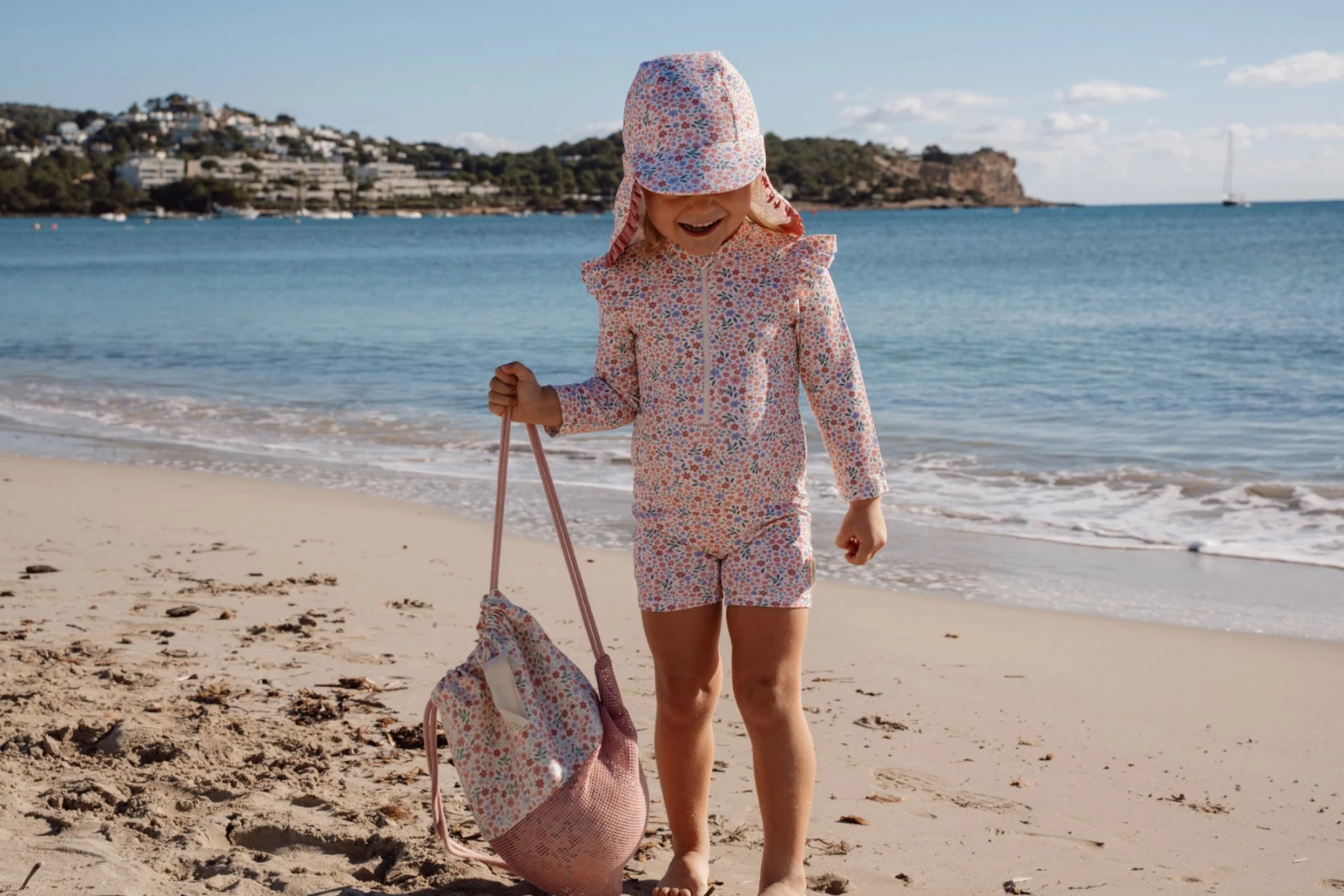 Čepička s krásným potiskem chrání vaše dítě před sluncem při koupání u moře i doma na zahradě. Ať už vaše děti milují skákání ve vlnách, koupání v bazénu nebo si rády staví hrady z písku, s touto čepičkou si mohou bezstarostně užívat celý den.