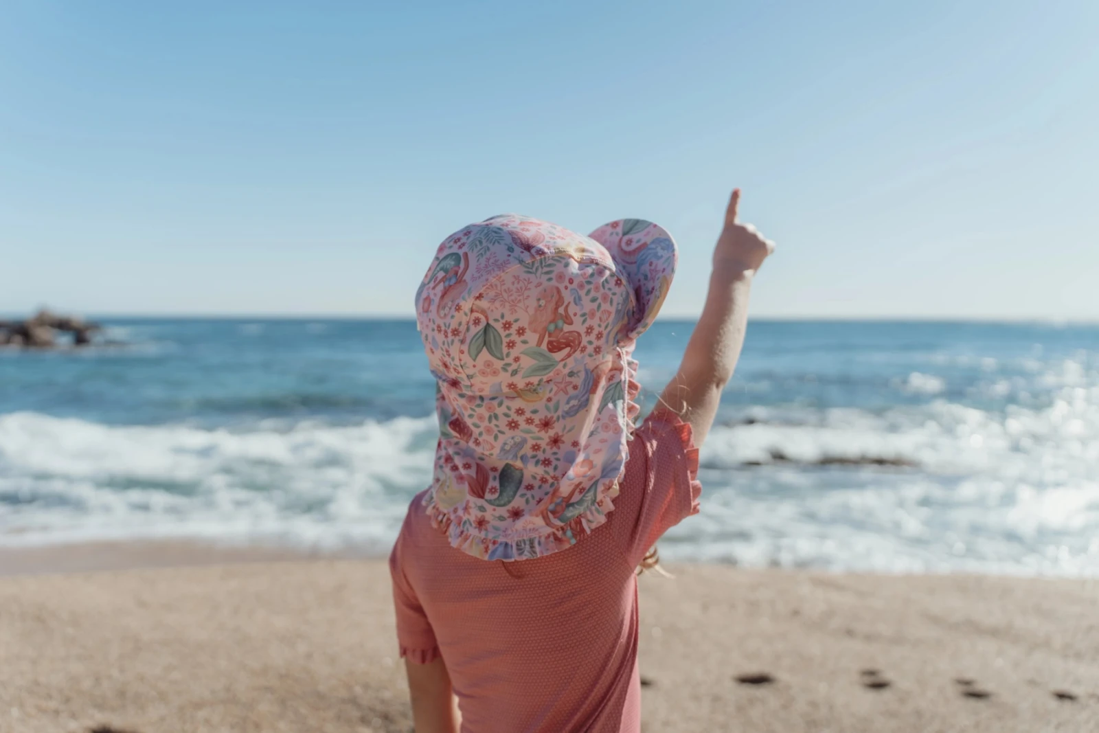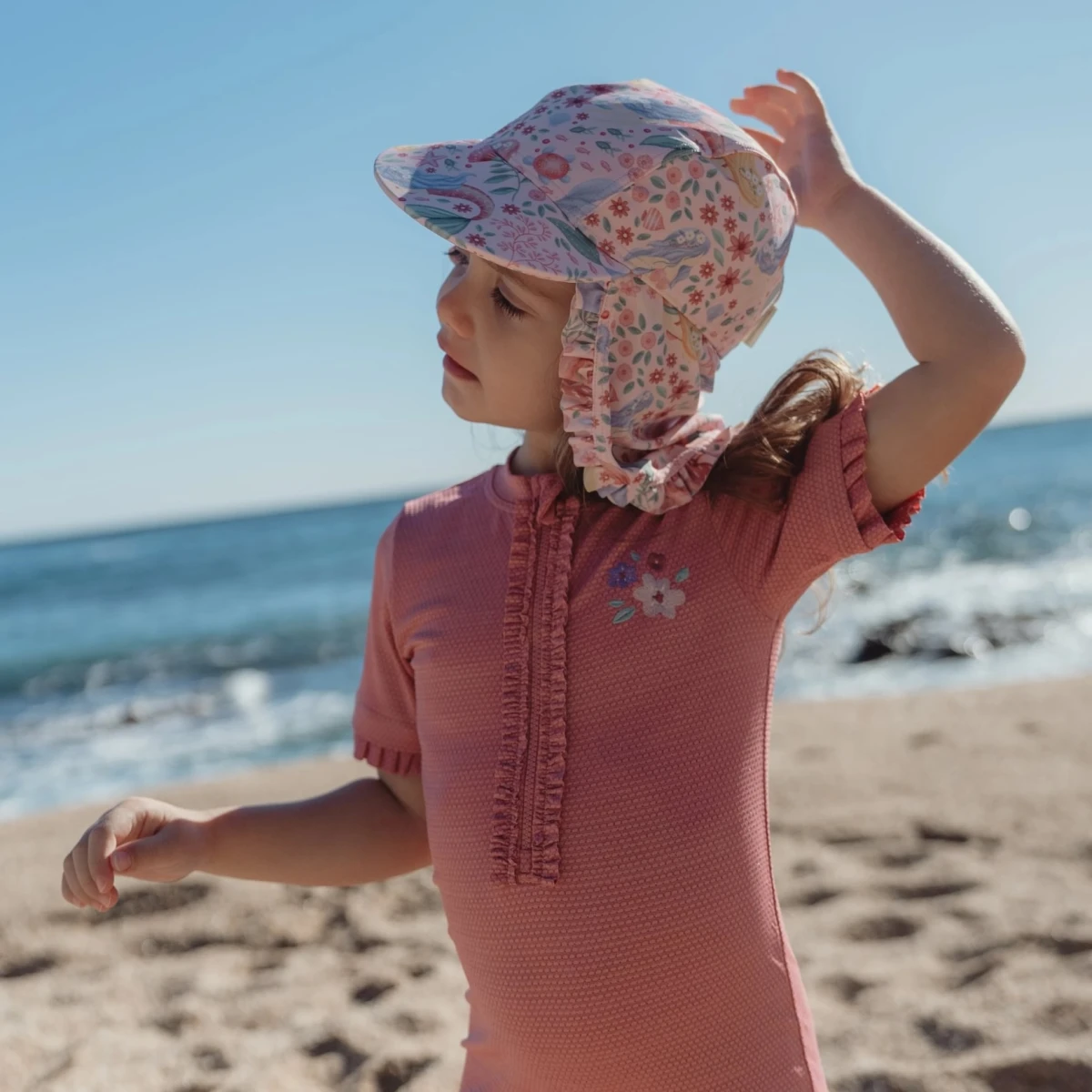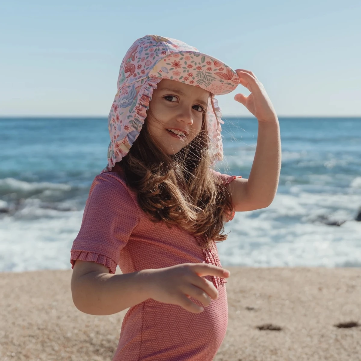 Čepička s krásným potiskem chrání vaše dítě před sluncem při koupání u moře i doma na zahradě. Ať už vaše děti milují skákání ve vlnách, koupání v bazénu nebo si rády staví hrady z písku, s touto čepičkou si mohou bezstarostně užívat celý den.