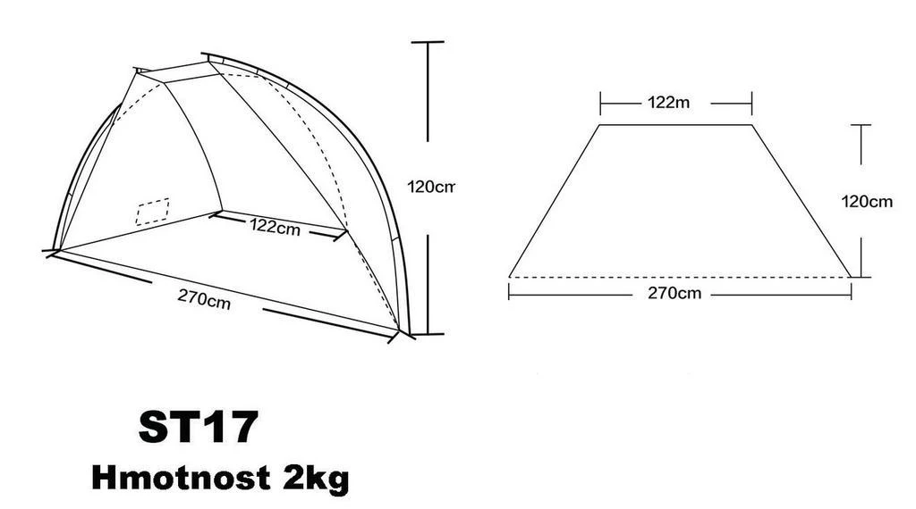 - výhodou stanu jsou malé rozměry ve složeném stavu a nízká hmotnost 2 kg