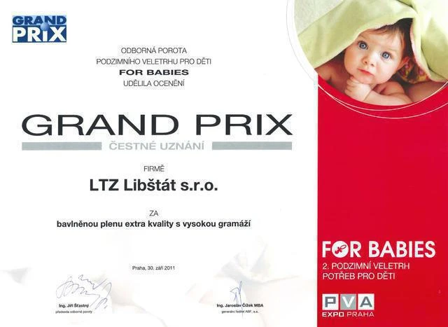 Díky vysoké kvalitě získaly tyto plenky prestižní ocenění GRAND PRIX FOR BABIES 2011 a v roce 2012 titul Čtvercová plena roku, což potvrzuje jejich výjimečné vlastnosti a oblíbenost mezi rodiči.