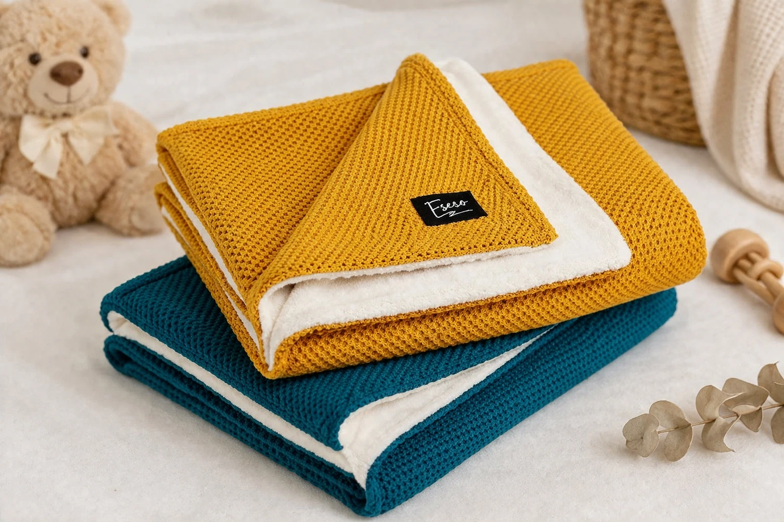 Dopřejte svému miminku maximální komfort s luxusní pletenou dekou ESECO s beránkem, která kombinuje elegantní design, kvalitní materiály a precizní ruční zpracování.