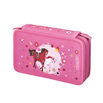 Školní penál dvoupatrový s výbavou. Obsahuje 23 dílů.