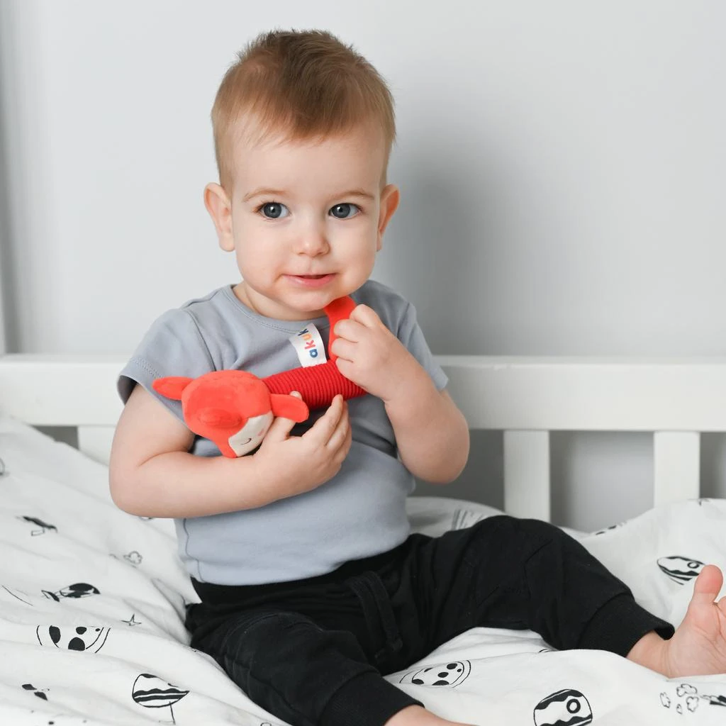 Roztomilá plyšová liška je vyrobena z měkkého a příjemného materiálu s různými texturami, které podněcují zvídavost dítěte. Interaktivní prvky – chrastítko, pískátko a šusticí části – podporují rozvoj zraku, sluchu i motorické koordinace. Hračka se po zmáčknutí ozve zvukem a ukrývá drobná překvapení, která zabaví miminko na dlouhou dobu.