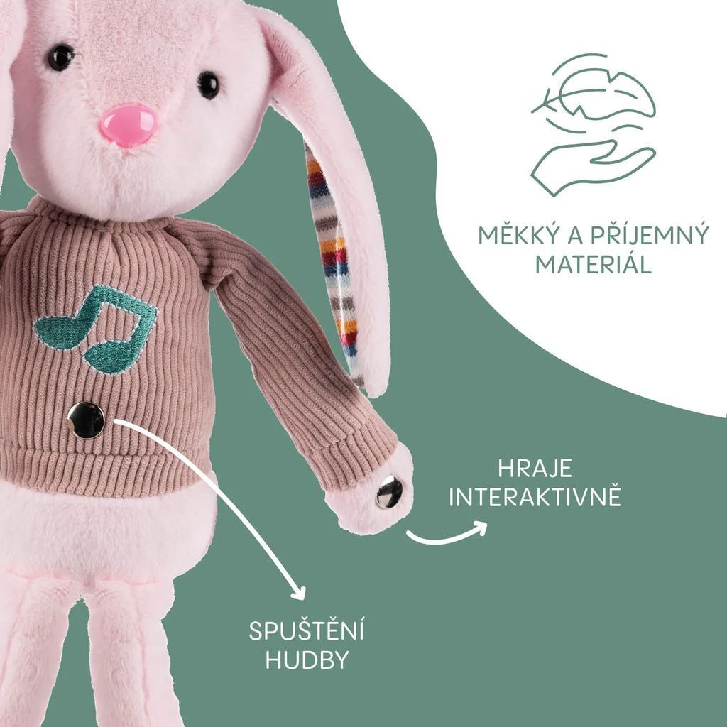 Díky měkkému plyšovému materiálu je hračka ideální nejen na hraní, ale i na mazlení a usínání. Bezpečné provedení zajišťuje, že je vhodná pro děti od 12 měsíců, a poskytuje jim hodiny zábavy a objevování nových zvuků.