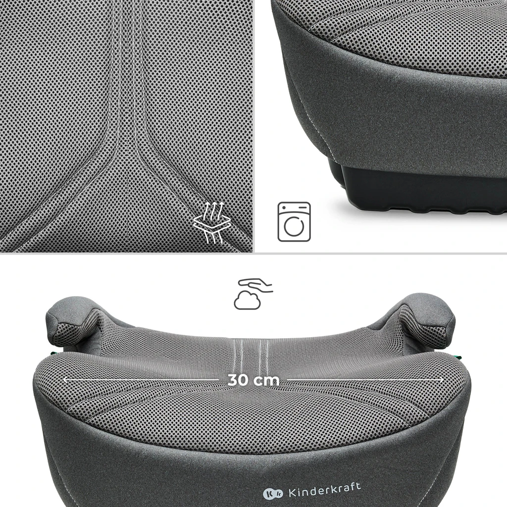 Model se vyznačuje stabilní instalací ISOFIX, která umožňuje rychlé a bezpečné upevnění autosedačky do vozidla. Široké a měkké sedátko s pěnovou výplní, v kombinaci s prodyšným potahem AIR FLOW, zaručuje maximální komfort i během delších cest. Ergonomické opěrky rukou zvyšují pohodlí, zatímco praktické vodící prvky pásu pomáhají správně umístit bezpečnostní pás. I-BOOST 2 PRO má lehký a kompaktní design, který usnadňuje každodenní používání, a díky odnímatelnému potahu je čištění rychlé a snadné.