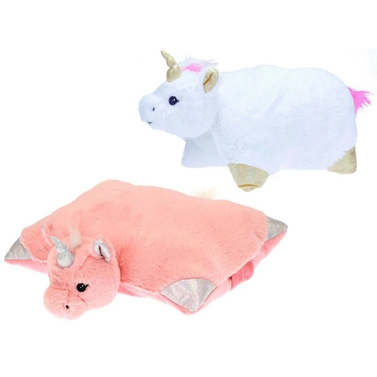 Příjemný plyšový polštářek jednorožec. Jednoduše uděláte s polštářku plyšového kamaráda nebo rozložíte zpět na polštářek. Rozměry: 38 x 28 cm
