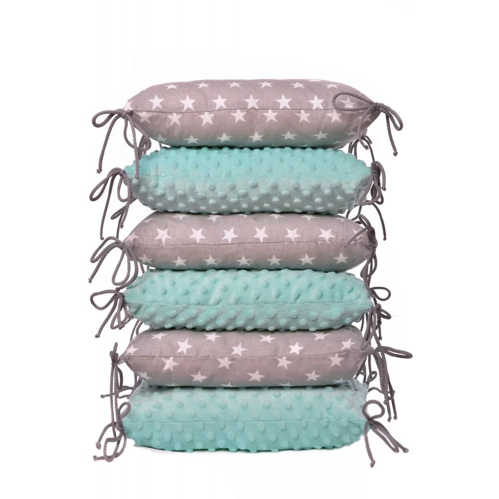 Výplň polštářků tvoří kvalitní antialergické PES kuličky (duté vlákno). Polštářkový mantinel je balen v praktickém obalu se stahováním vhodném nejen pro skladování, ale i na cesty a další využití. Náš polštářkový mantinel T-TOMI je vhodný pro děti od narození. Je rovněž vhodným dárkem pro budoucí maminky.