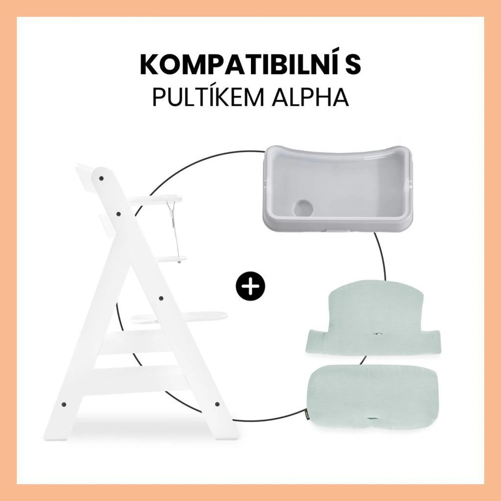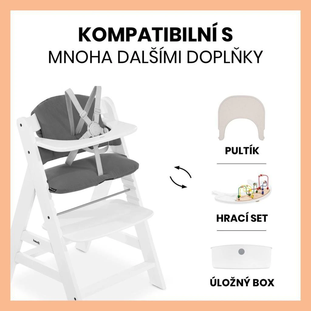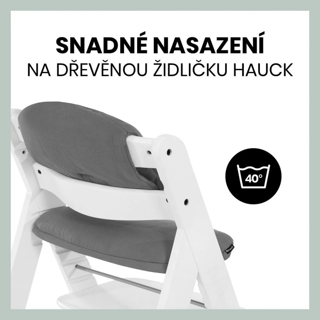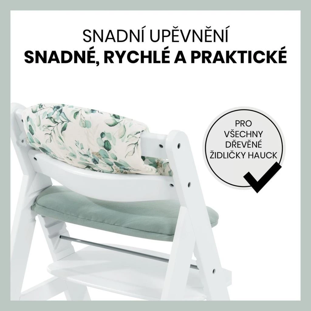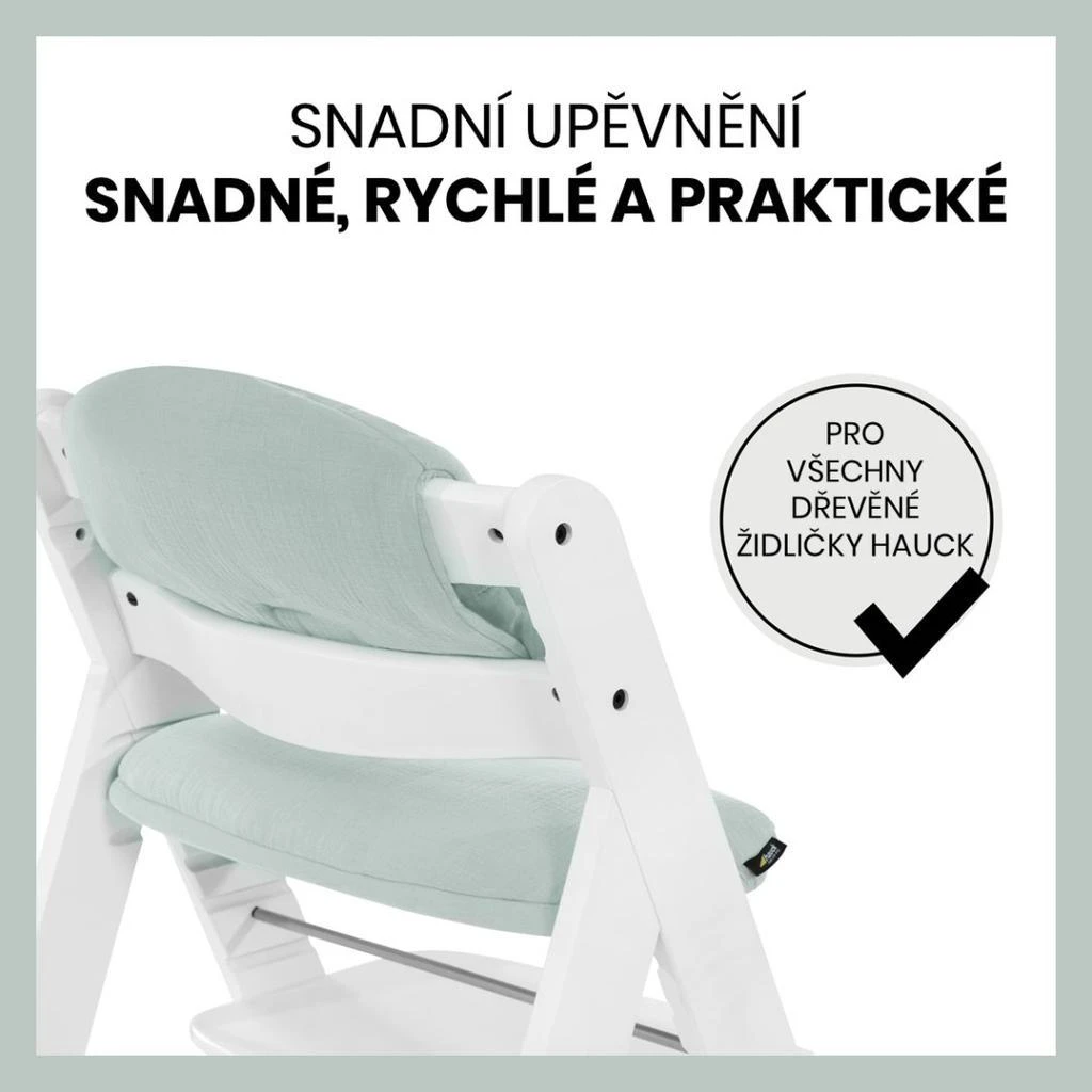 Sedátko je kompatibilní s mezi-nožním a 5-bodovým bezpečnostním pásem: Všechny dřevěné židličky hauck jsou vybaveny rozkrokovým a pětibodovým bezpečnostním pásem. Polstrování je plně kompatibilní s těmito bezpečnostními prvky tak, aby vaše děťátko mohlo být vždy v pohodlí a bezpečí – v každém věku!