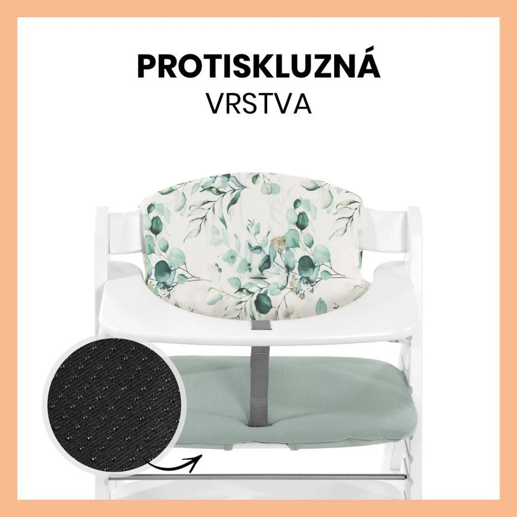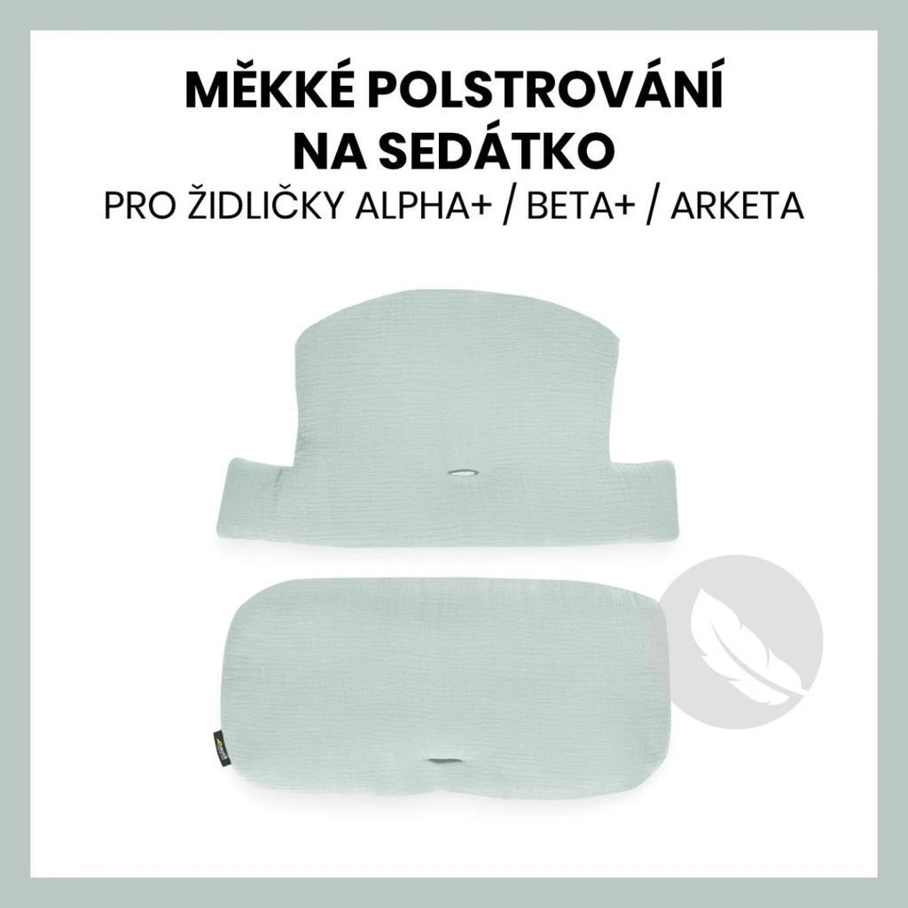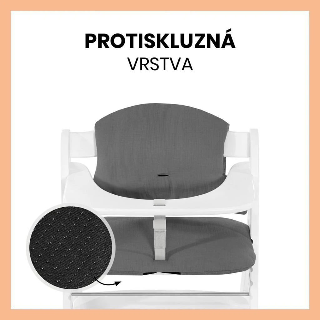 Snadné upevnění k jídelní židličce - Jednoduché, rychlé a praktické: Polstrování na židlička Select lze snadno připevnit k vysoké židličce. Žerzejová verze se připevňuje pomocí háčku a poutka; mušelínová verze pomocí patentek. A pokud je potřebujete vyčistit – stačí je hodit do pračky.