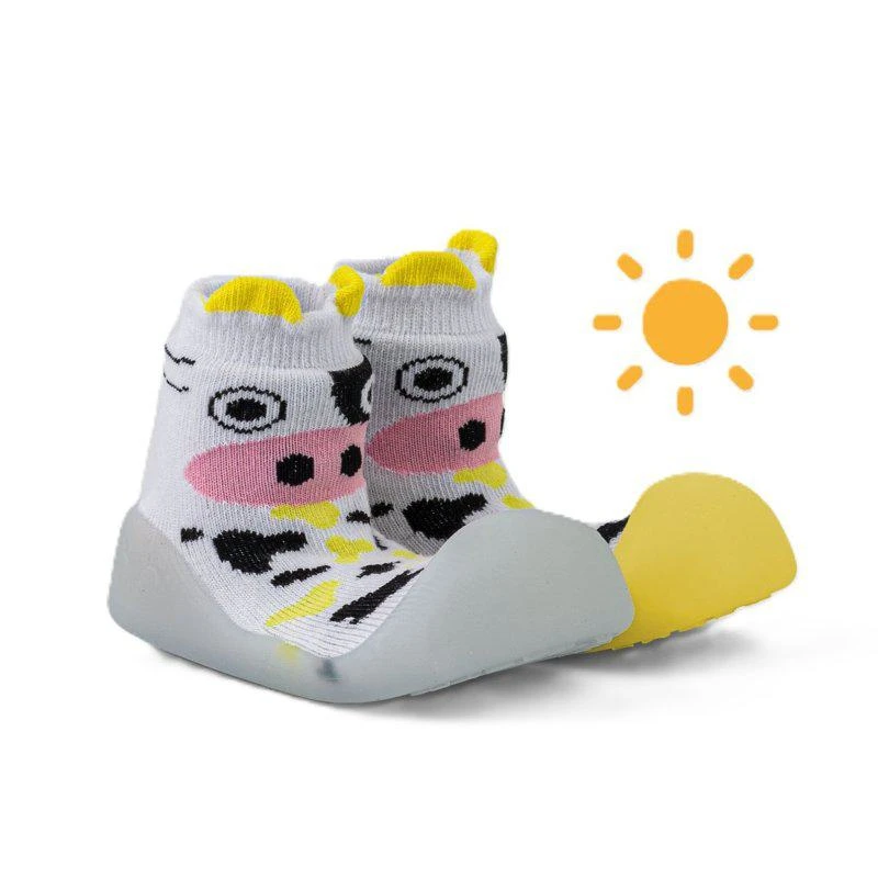 Ponožkové botičky Chameleon byly navrženy s jediným cílem: spojit zdravý vývoj chodidla s radostí a zábavou! Podporují nejen zdravý vývoj chodidla, ale také přinášejí radost a motivaci k prvním krůčkům díky své schopnosti měnit barvy! Chůze v těchto botičkách dopřává dostatek prostoru pro prstíky a umožňuje neustálý kontakt se zemí. Volná špička podporuje správný vývoj chůze a nebrání krevnímu oběhu dětské nožky. Chození v ponožkobotkách je velmi podobné přirozené chůzi naboso, což je prospěšné nejen pro nohy, ale i pro celý organismus. Botičky Chameleon mají navíc unikátní funkci změny barvy podrážky - reagují na okolní prostředí způsobem, který děti naprosto fascinuje a motivuje k pohybu a zkoumání okolního světa - při kontaktu se slunečními paprsky mění podrážka svůj barevný odstín, což vytváří pro malé objevitele kouzelný zážitek při každém krůčku.