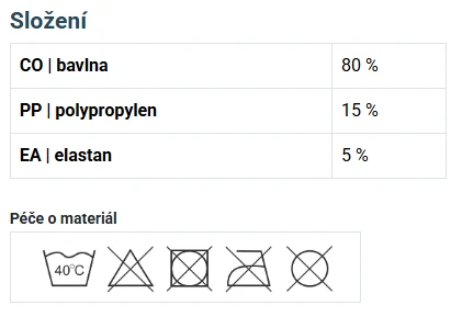 | Velikosti ponožek | 11 - 19 (0- 6 měsíců) / 20 - 22 (6 - 18 měsíců) / 26 - 28 / 32 - 34 / 35 - 37 |