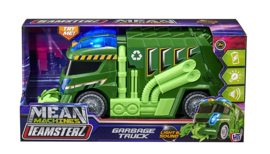 Popelářský vůz Teamsterz se zvukovými efekty, modrým blikajícím světlem a umí realistické zvuky motoru a popelářského vozu.