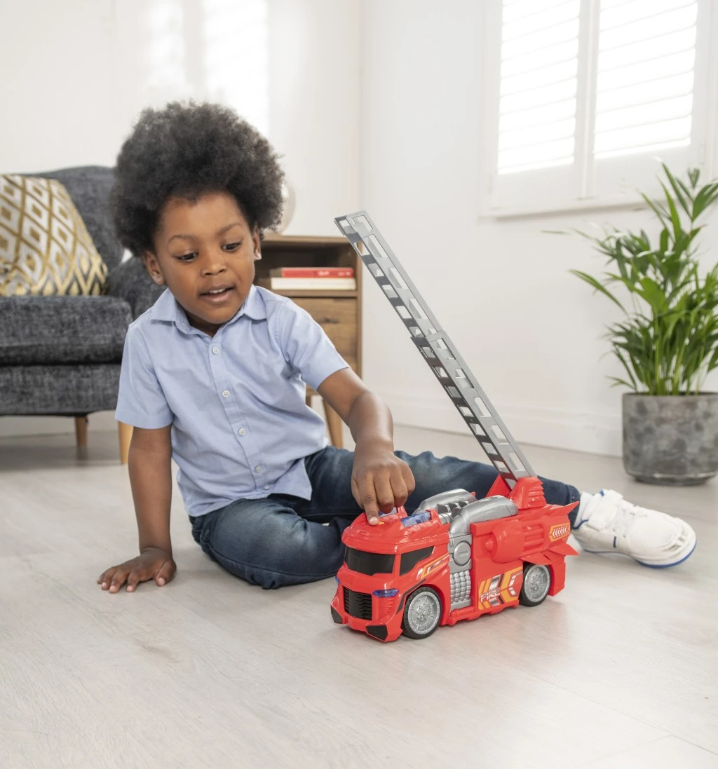 Výsuvný žebřík, který se otáčí o 360 stupňů, umožňuje dětem simulovat reálné záchranné akce, jako je zachraňování lidí z vysokých budov. Nezávislá volně se pohybující kola zajišťují hladké manévrování, takže auto snadno projede různými překážkami a těsnými prostorami.
