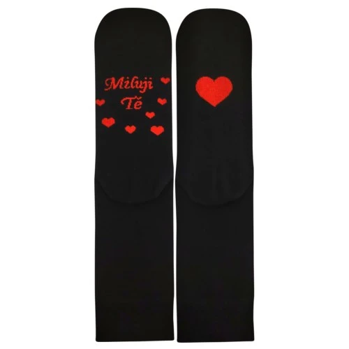 Valentýnské ponožky pro muže i ženy Vás okouzlí originálním nápisem na chodidle, který je určený pouze pro vaše miláčka. Klasické ponožky v černé barvě mají jemný nestahující lem, který neškrtí a nestahuje a navíc mají řetízkovanou špici, která netlačí a netvoří se tak otlaky ani puchýře při každodenním nošení.