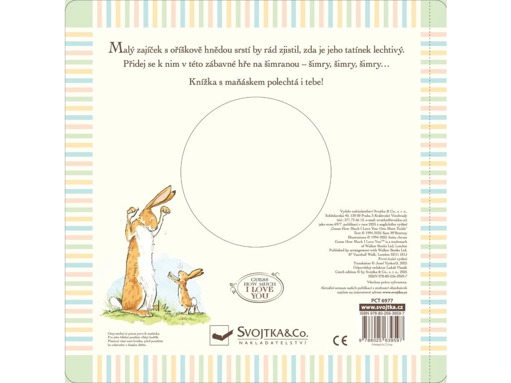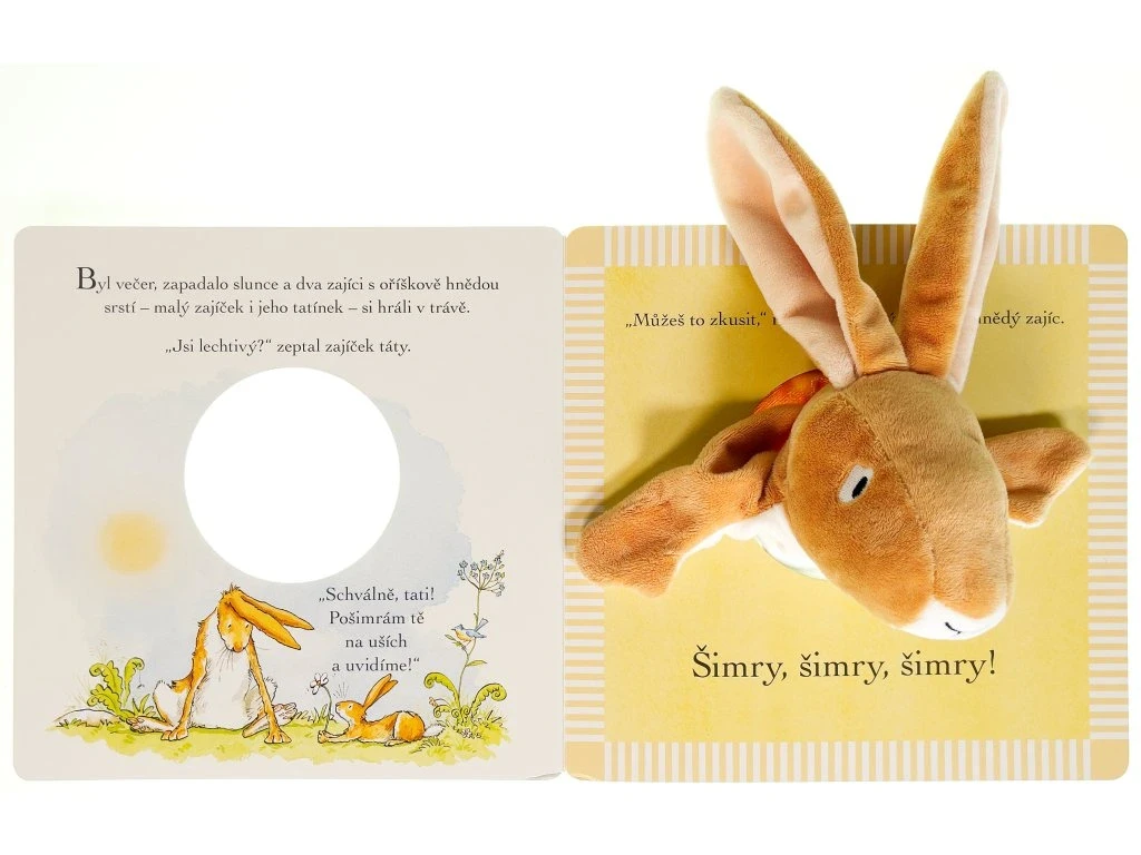 Táta zajíc s oříškově hnědou srstí a jeho malý synek si před spaním hrají na šimranou – a ty se můžeš přidat! Tato roztomilá knížka s maňáskem ti umožní stát se součástí večerního mazlení. Šimrej zajíčka na čumáčku, pod bradičkou i na packách a pomoz mu zjistit, kde ho to nejvíc lechtá. Příběh plný lásky, něhy a smíchu, ideální pro společné čtení před usnutím. Maňásek zabudovaný přímo do knihy přináší zábavné, interaktivní čtení, které děti i rodiče prostě milují.
