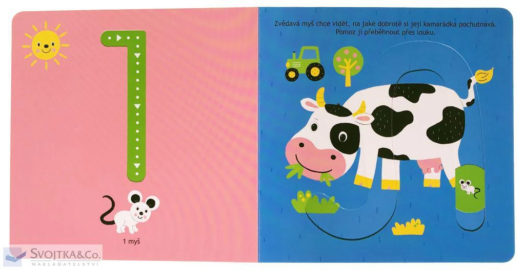 Myš bezradně na louce hledá svoji kamarádku, nebohá včelka nemůže najít cestu do úlu a kuřátko ztratilo maminku. Pomoz všem zvířátkům najít tu správnou cestu pomocí pohyblivého kolečka. Kromě procvičení jemných motorických schopností si nejmenší děti osvojí i čísla od 1 do 5. Obtahováním číslic prstem ve vyznačené oblasti se tak děti seznámí s jejich tvary a připraví se tak na jejich samotné psaní. Zábavné leporelo s krásnými ilustracemi děti nejen zaujme, ale i poučí.