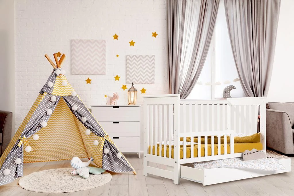 Postýlka dětská se zábranou a šuplíkem Iwo bílá 120x60 cm