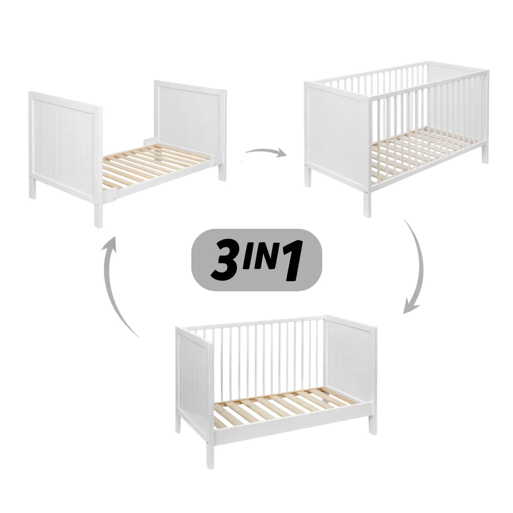 Postýlka dřevěná Mila 3 in 1 White Wood 120 x 60 cm Petite & Mars